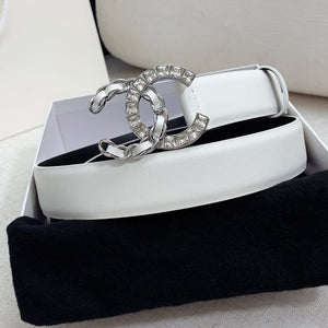 CC WOMEN'S BELT 3.0CM LEATHER WHITE BUCKLE SILVER