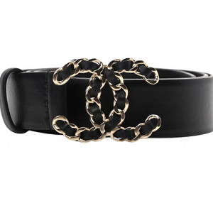 CC WOMEN'S BELT 30MM LEATHER BLACK BUCKLE GOLD DIAMOND CARO