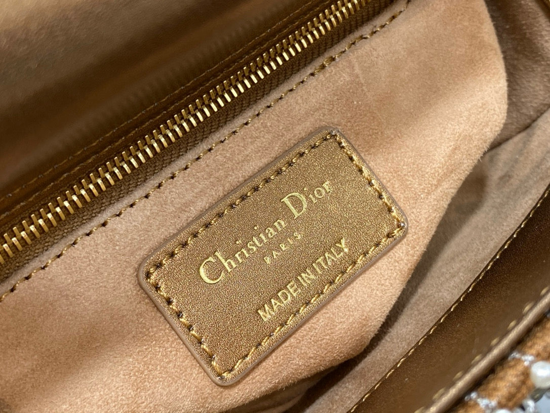CD Lady 17 Brown metallic Canvas and Calfskin attached diamonds