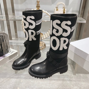 CD D-Major Boot Black Mix White Calfskin And Oblique Jacquard Fabric