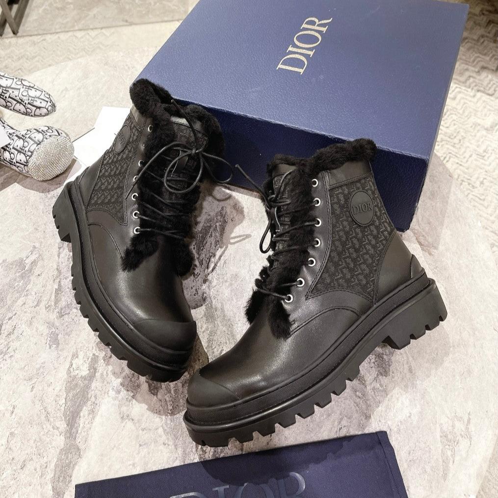 CD Explorer Ankle Boot 50mm Black Fleece Lining Oblique Jacquard Fabric And Cowhide