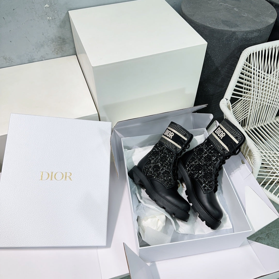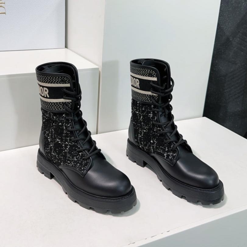 CD Major Ankle Boots Black White Calfskin And Fabric Canvas