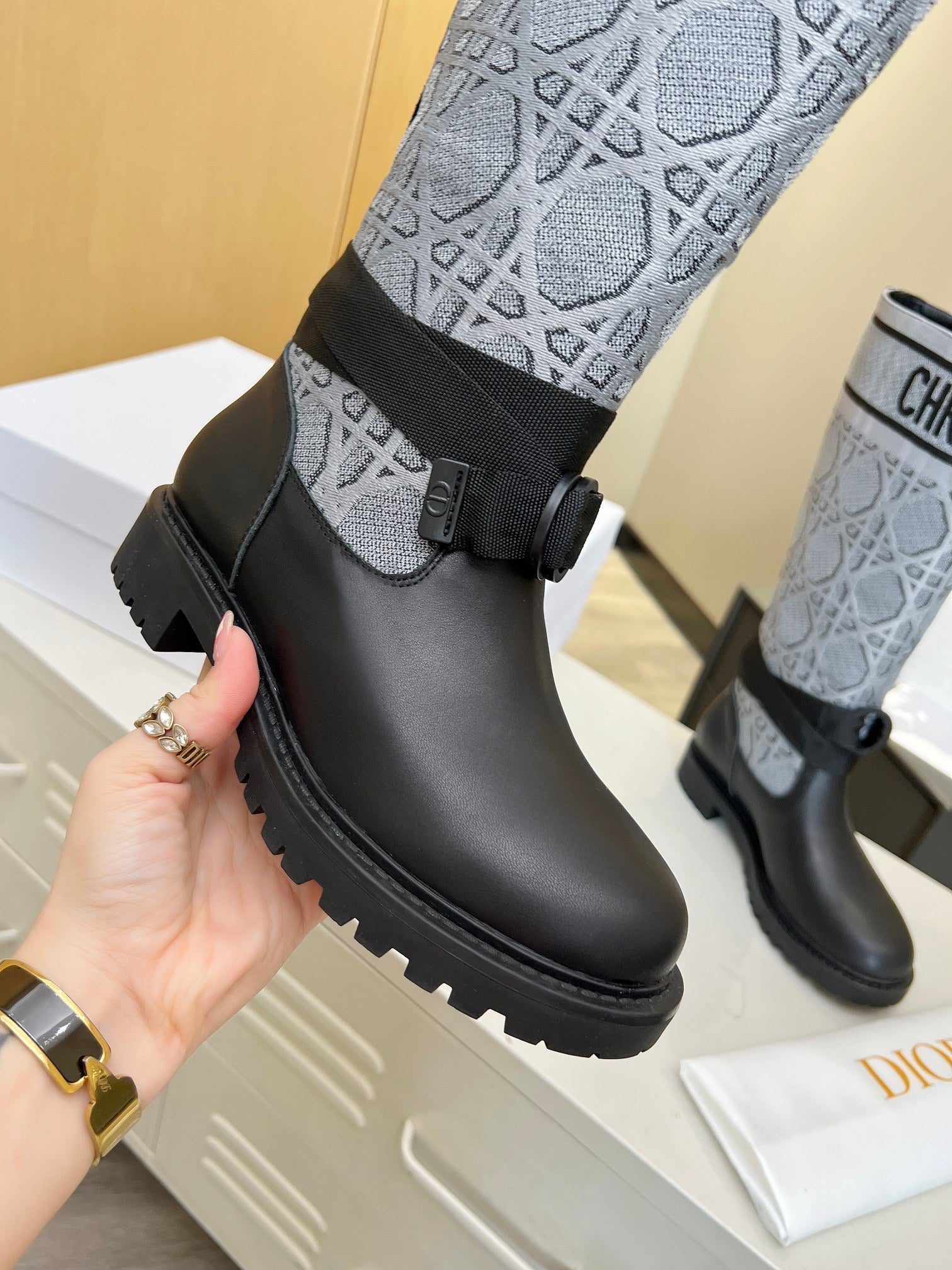 D-Major Boot In Grey Mix Black Denim Fabric And Lambskin 107717