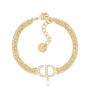 CD LOGO MOP GOLD DOUBLE CHAIN NECKLACE