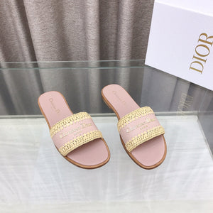 CD D-Lane Flat Colorblock Espadrilles Pink Raffia and Calfskin