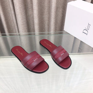 CD DWAY flat flip-flop colorblocked logo embroidery burgundy 15mm cowhide