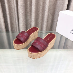 CD DWAY flip-flop colorblocked logo embroidery burgundy 45mm cowhide
