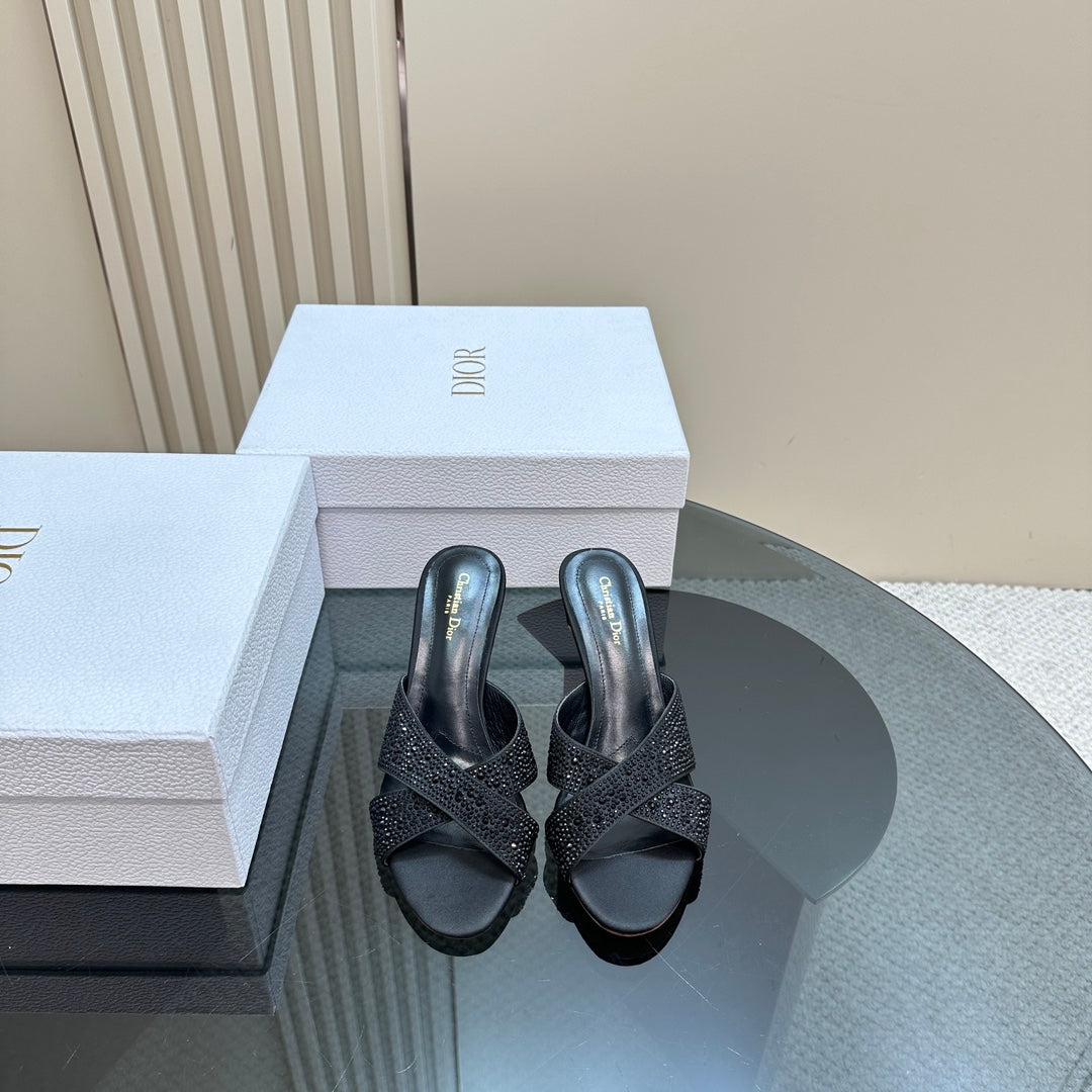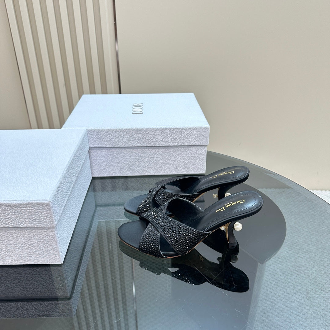 CD Tribales Heeled Slide 80mm Black Lambskin And Studded With Stones