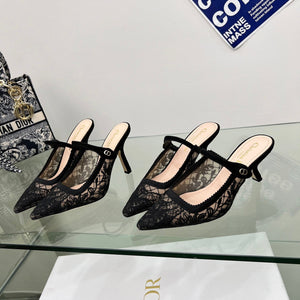 CD 25 D-Lane Heeled Slide Double Strap Calfskin
