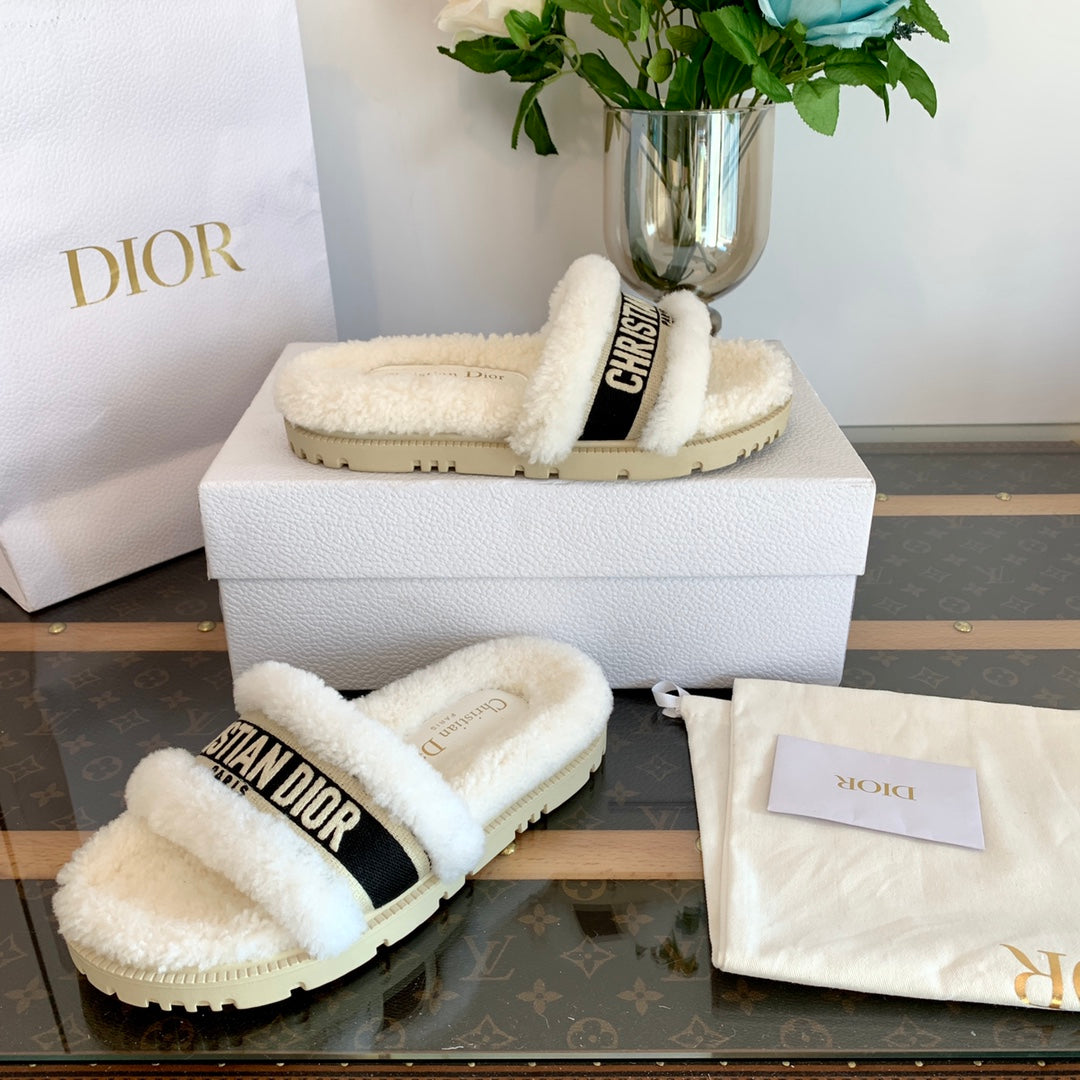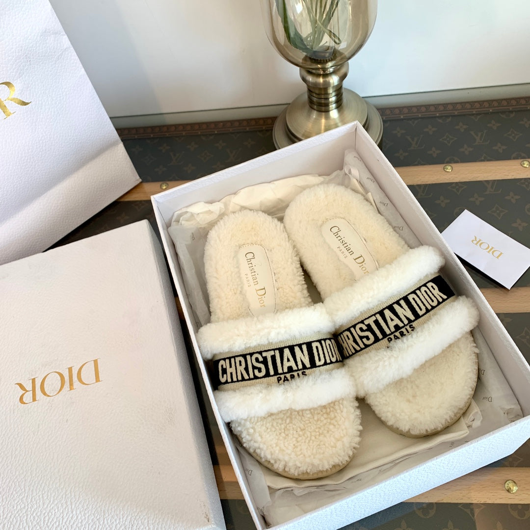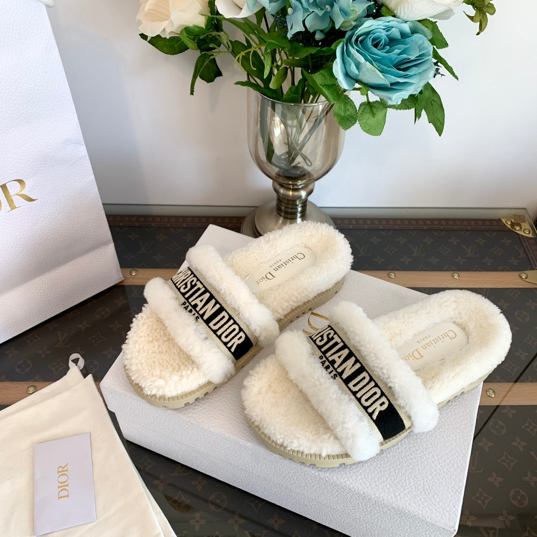 CD Dway Slide Black White Fleece Lining And Canvas Fabric