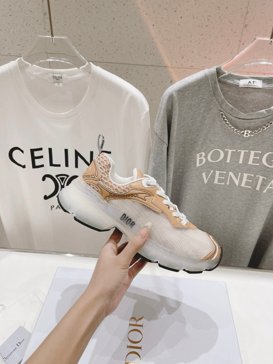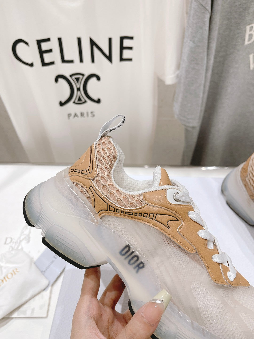 CD Vibe Sneaker White Beige Brown Polyester Mesh Fabric And Lambskin