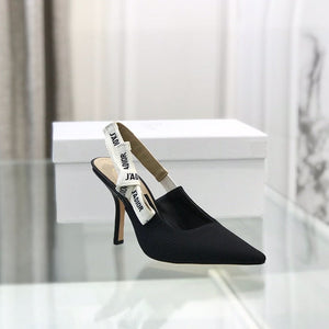 JAdior slingback flat full transparent mesh black embroidered cotton