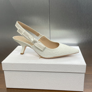 cd slingback pump 65 embroidered cotton white calfskin resin pearl