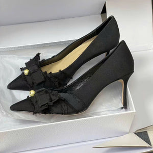 CD Adiorable Pearl Fringe 10cm Pumps in Black Silk Grosgrain