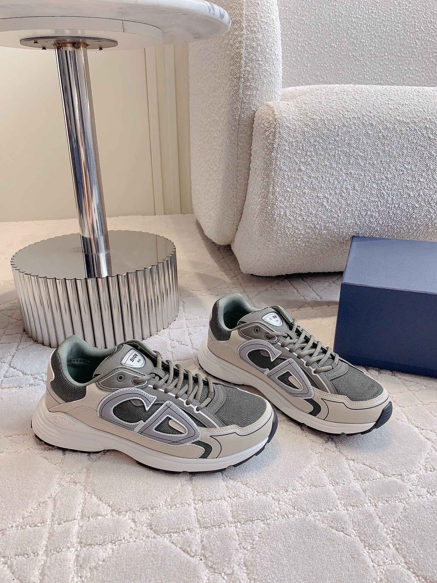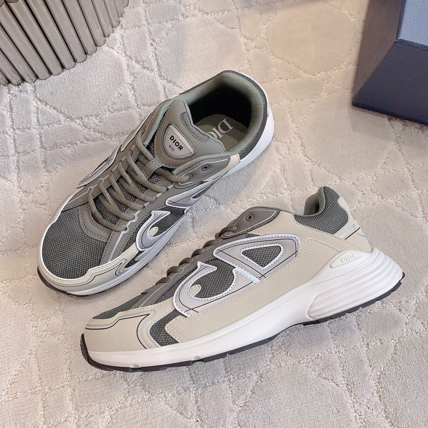 CD B30 Sneaker Gray Brown Mix Beige White Polyester Mesh Fabric And Calfskin
