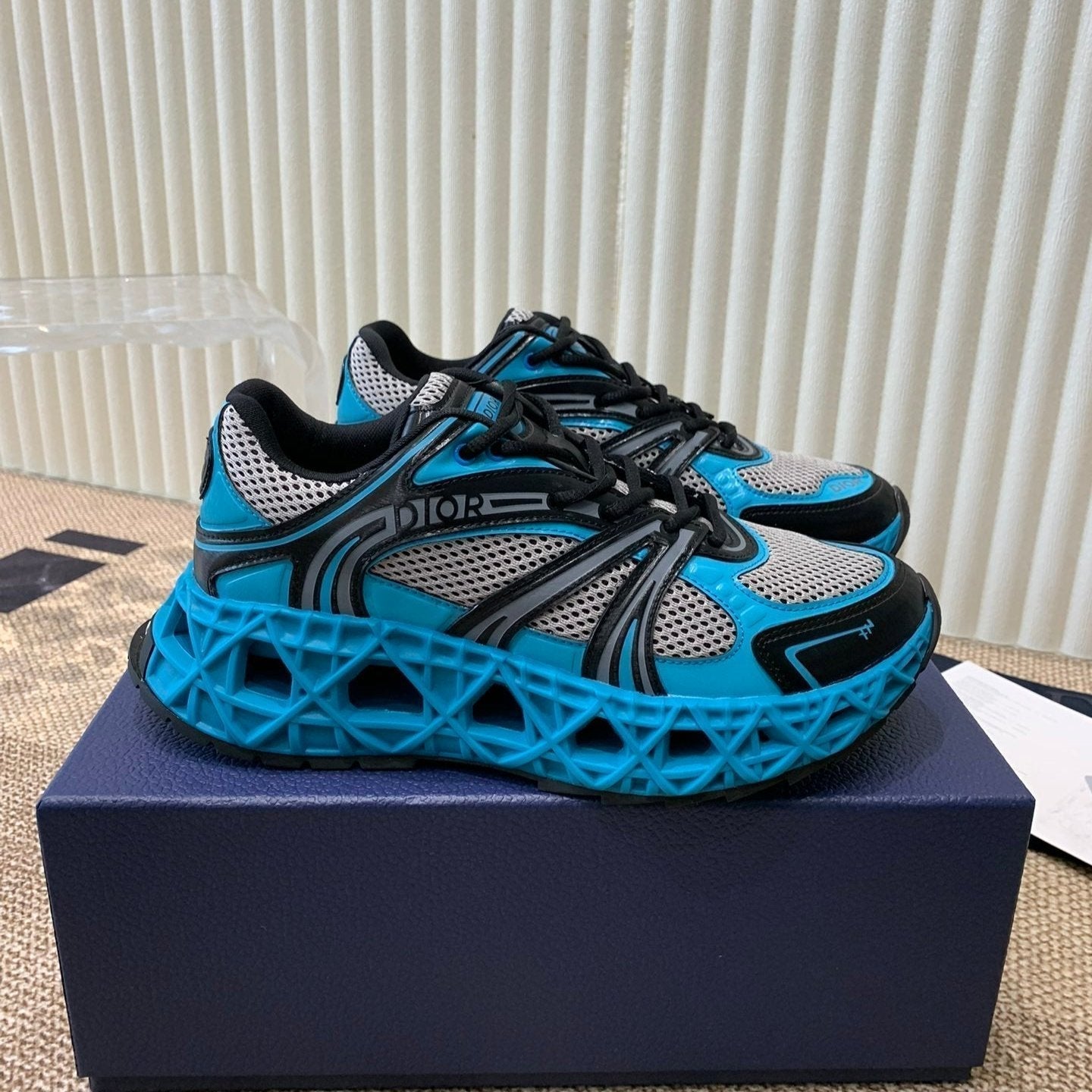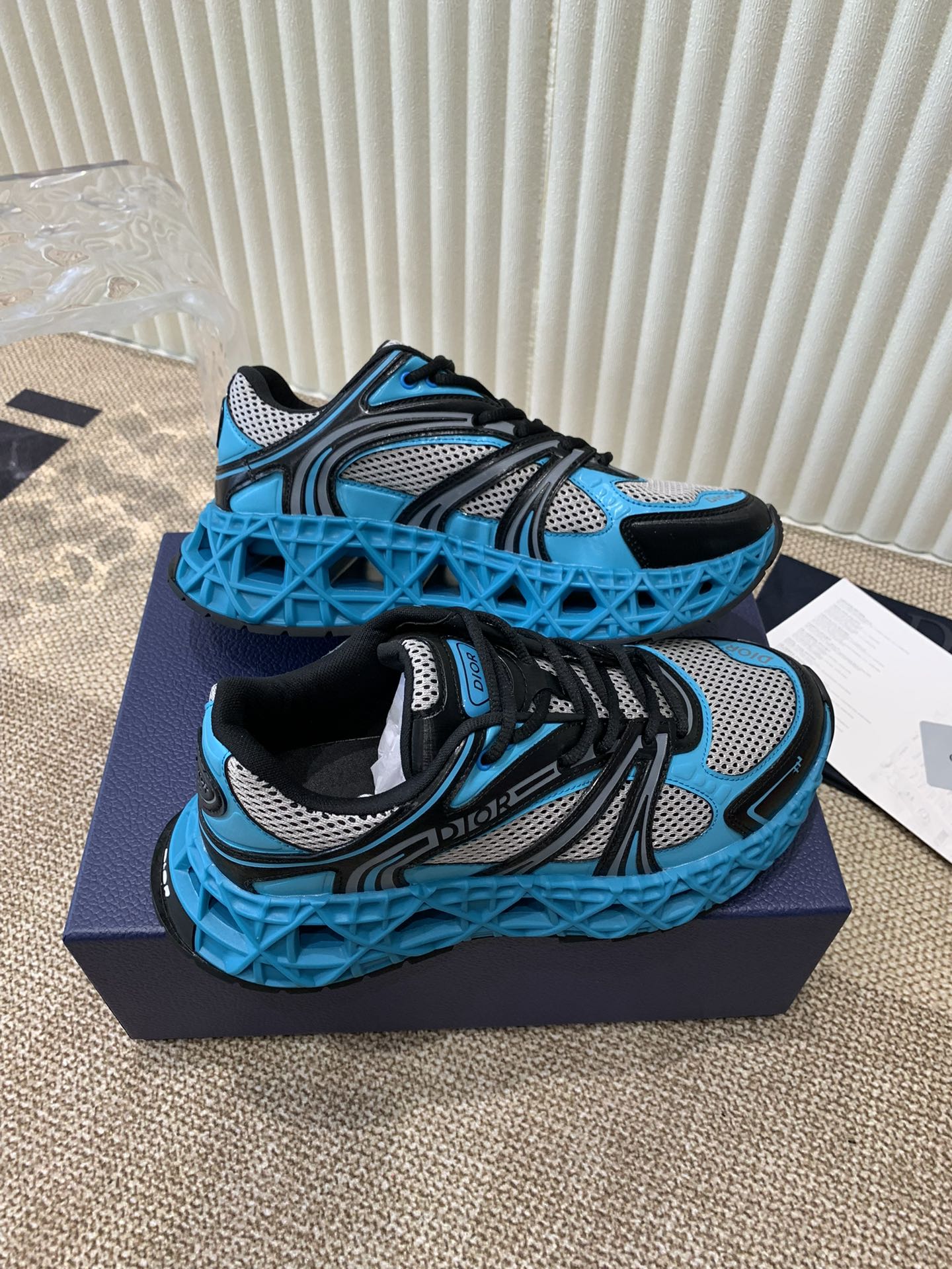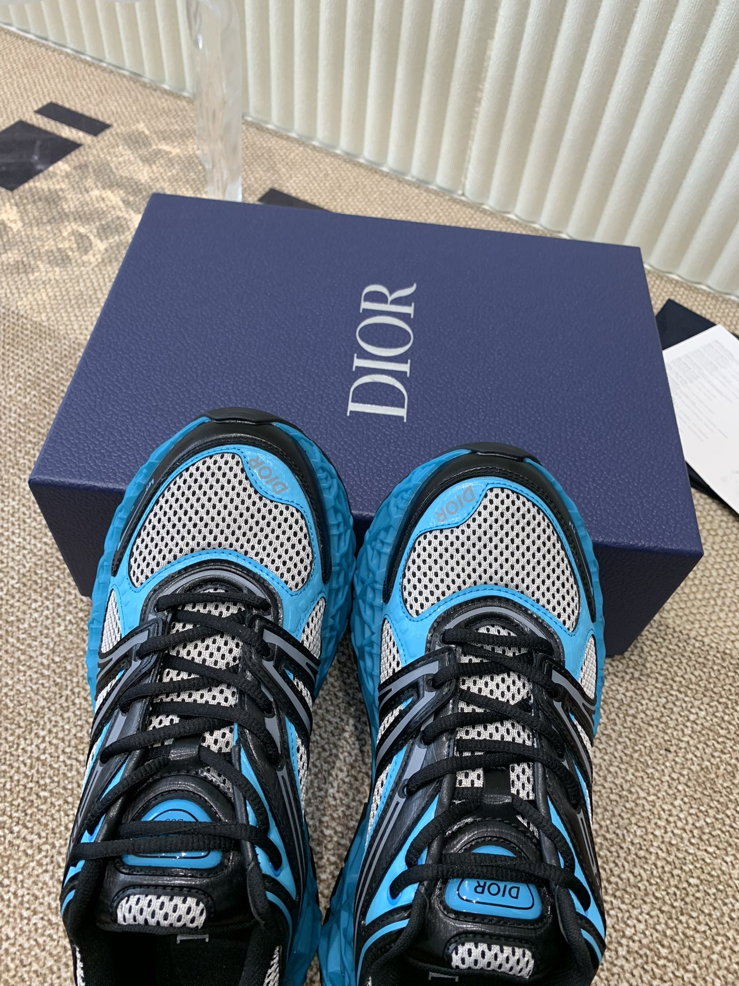 CD Sneaker B35 In Blue Mix White Black Calfskin And Fabric 113121