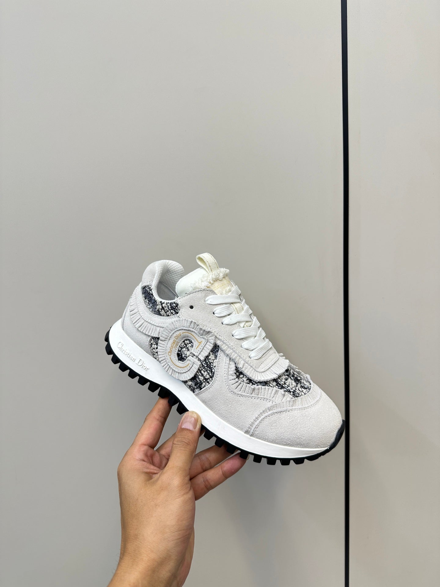 C'est Dior Sneaker In White Suede And Tweed Fabric 989934