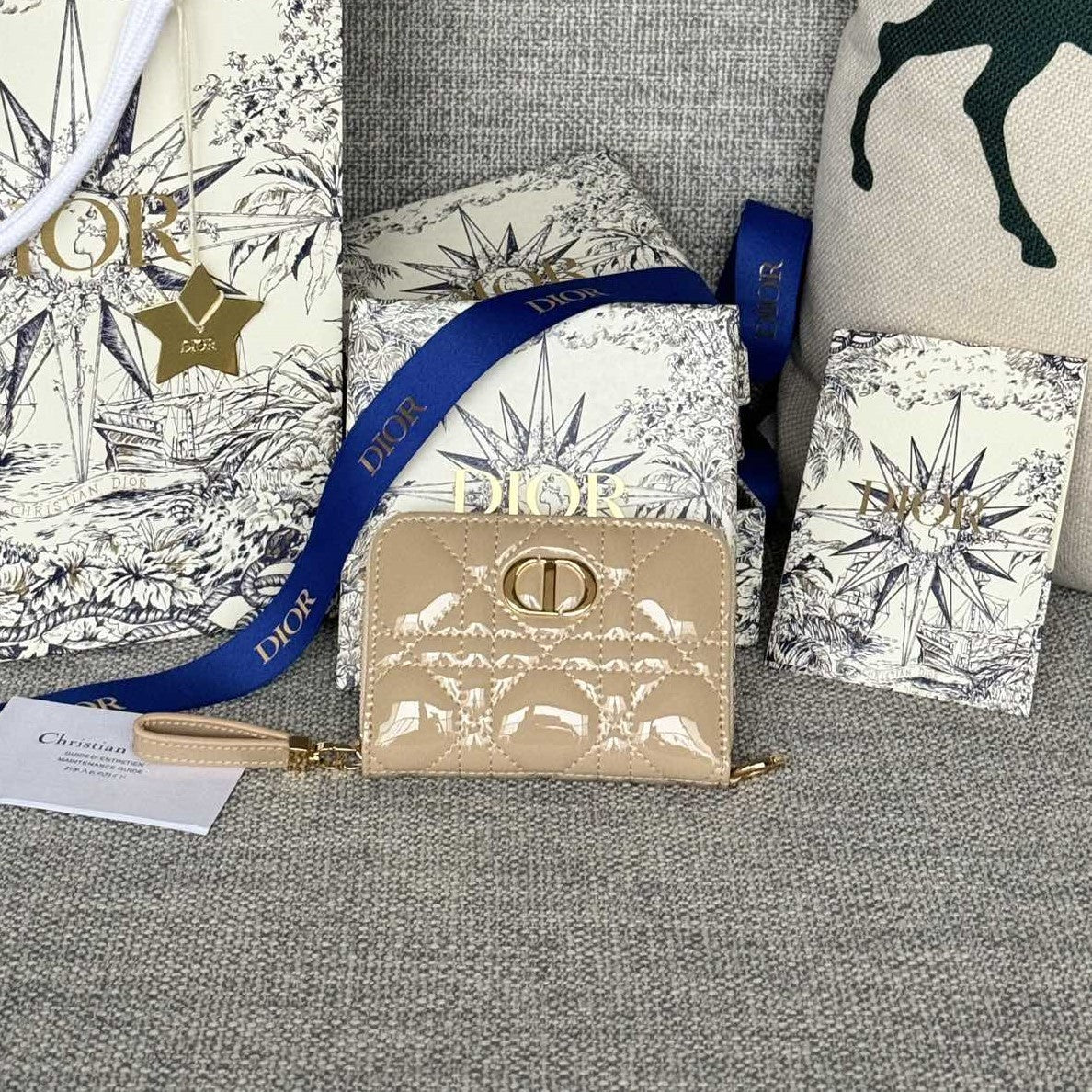 CD Logo Caro 11cm Compact Wallet Shiny Beige Calfskin
