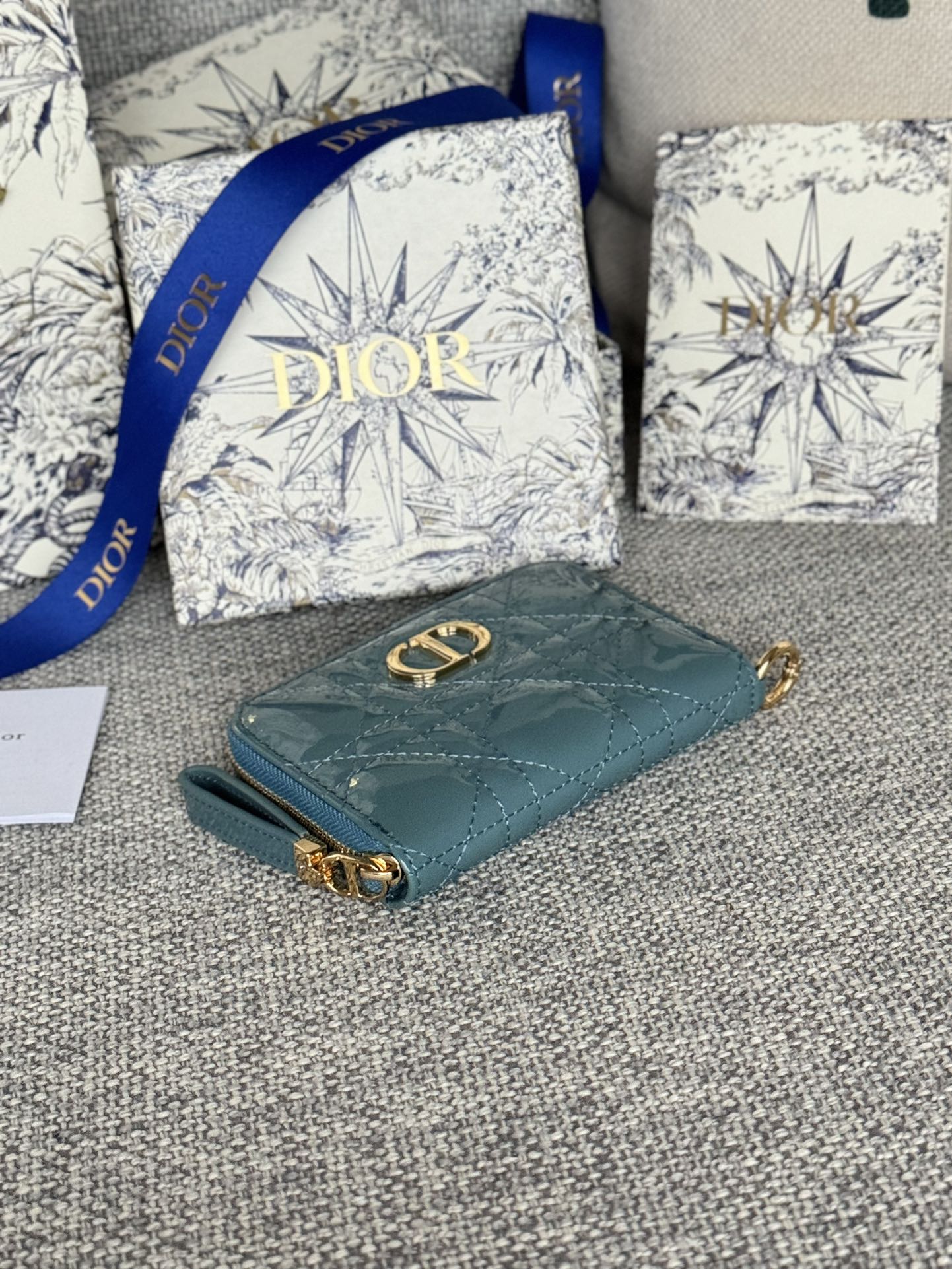 CD Logo Caro 11cm Compact Wallet Shiny Teal Calfskin