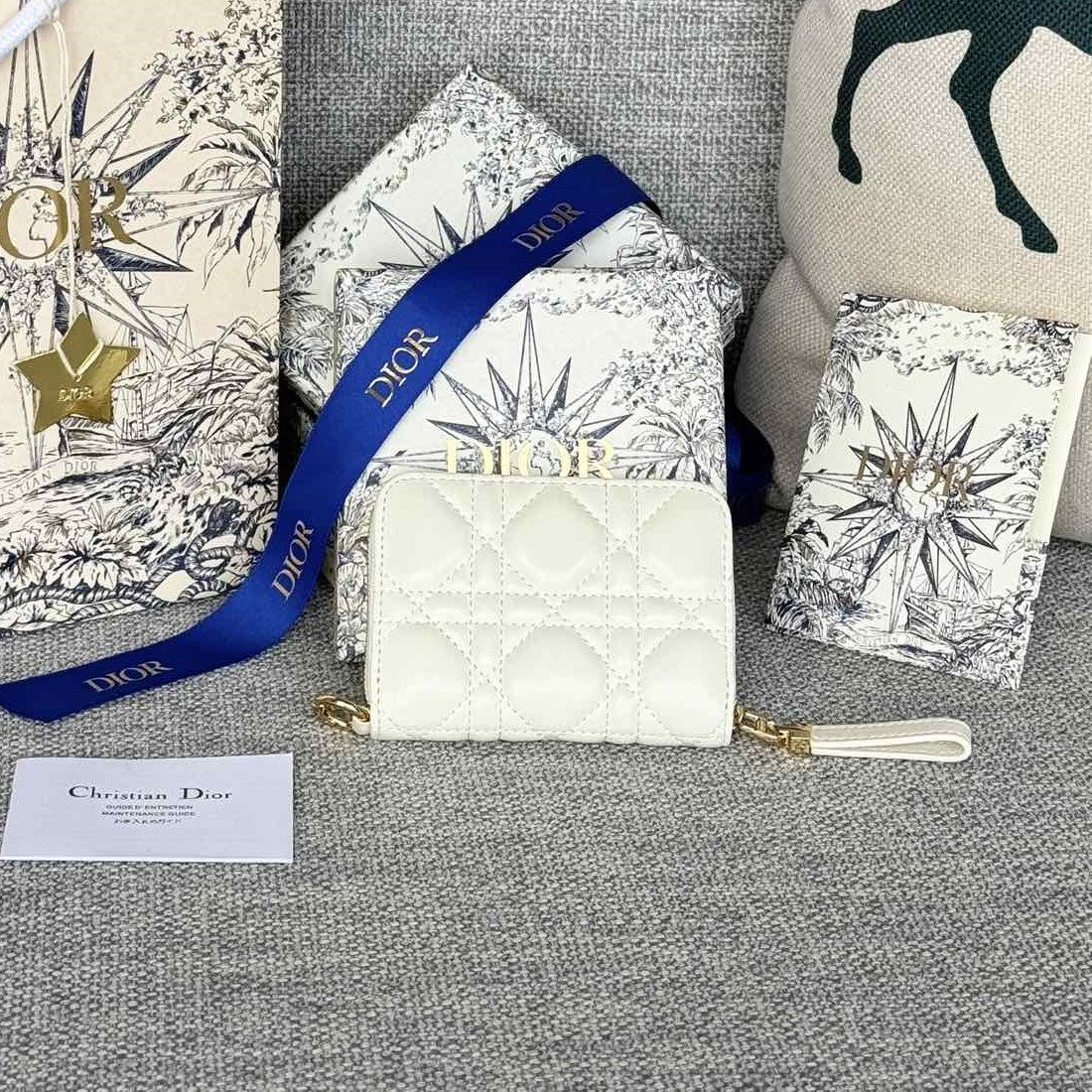 CD Logo Caro 11cm Compact Wallet White Calfskin