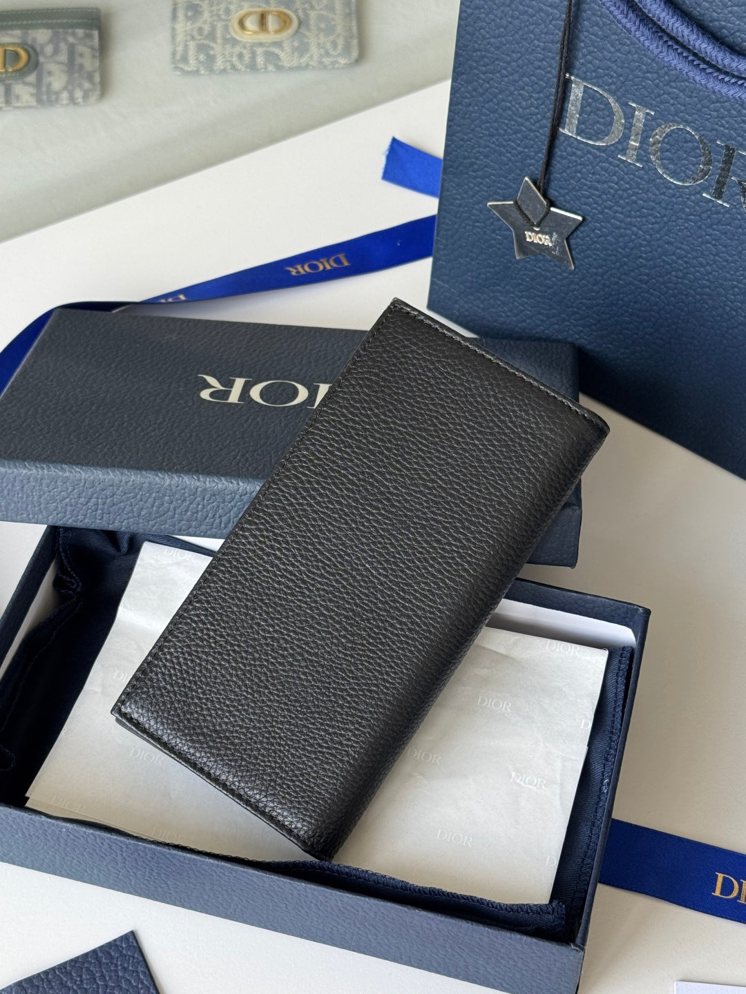 CD Saddle Long Vertical Wallet Black Cowhide & Jacquard