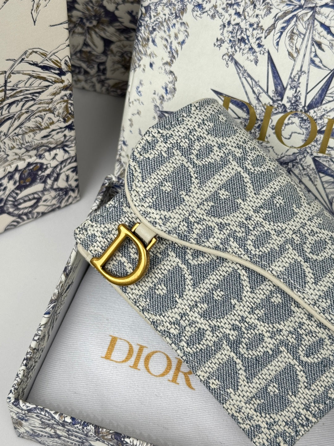 CD Saddle Lotus Wallet 10.5cm White Grey Jacquard GHW