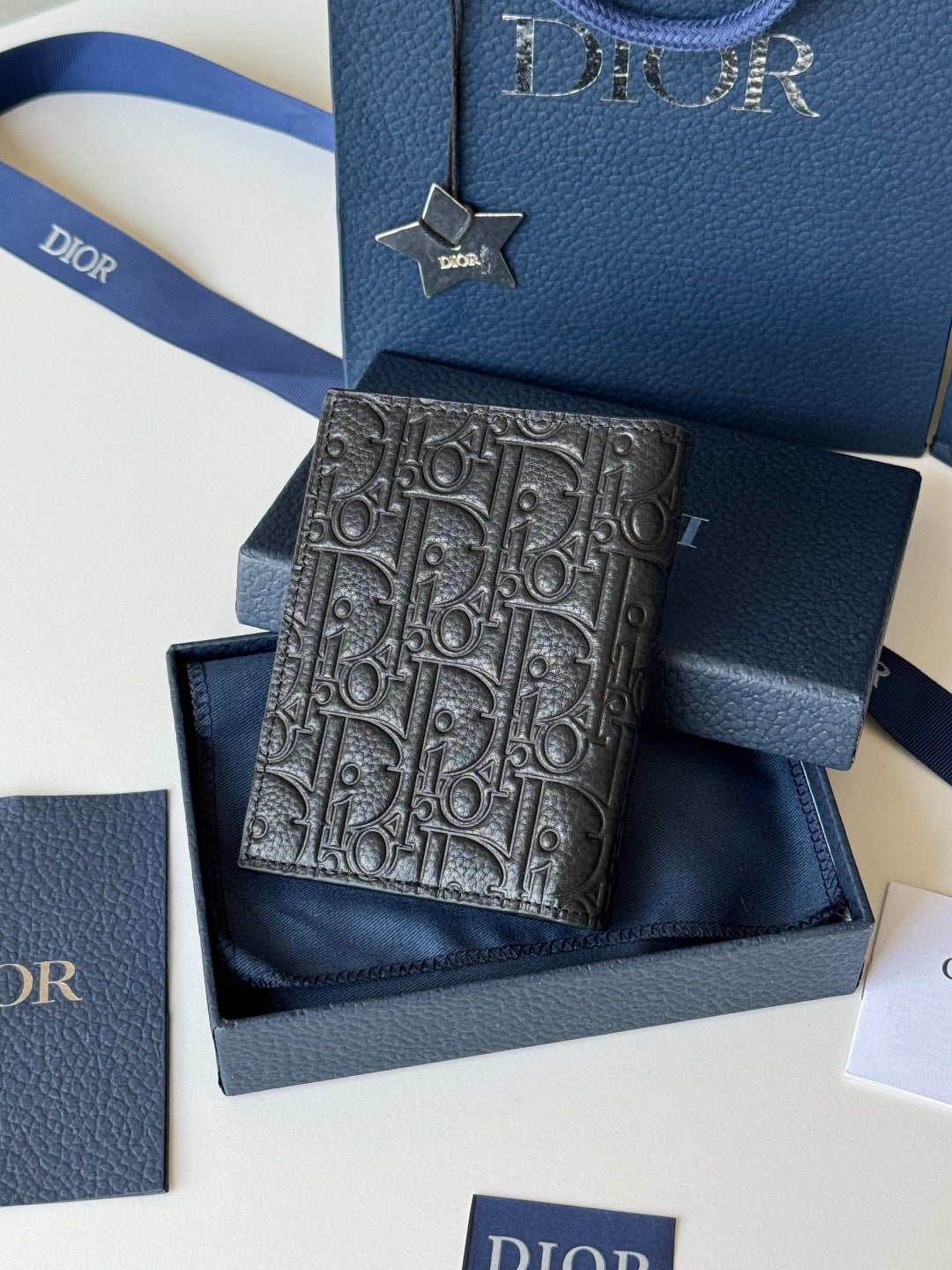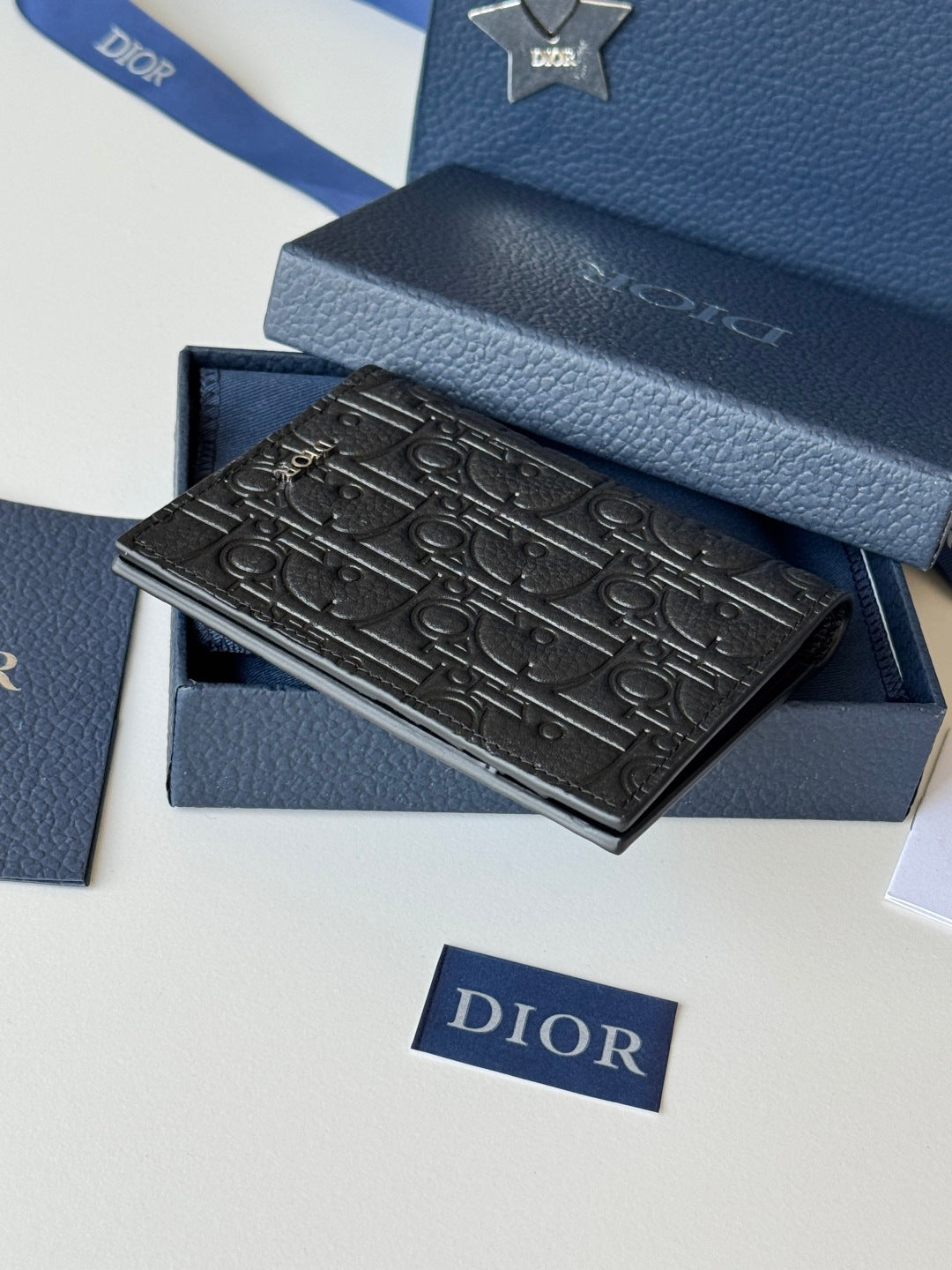 CD Vertical Bifold Card Holder Black Grain Cowhide