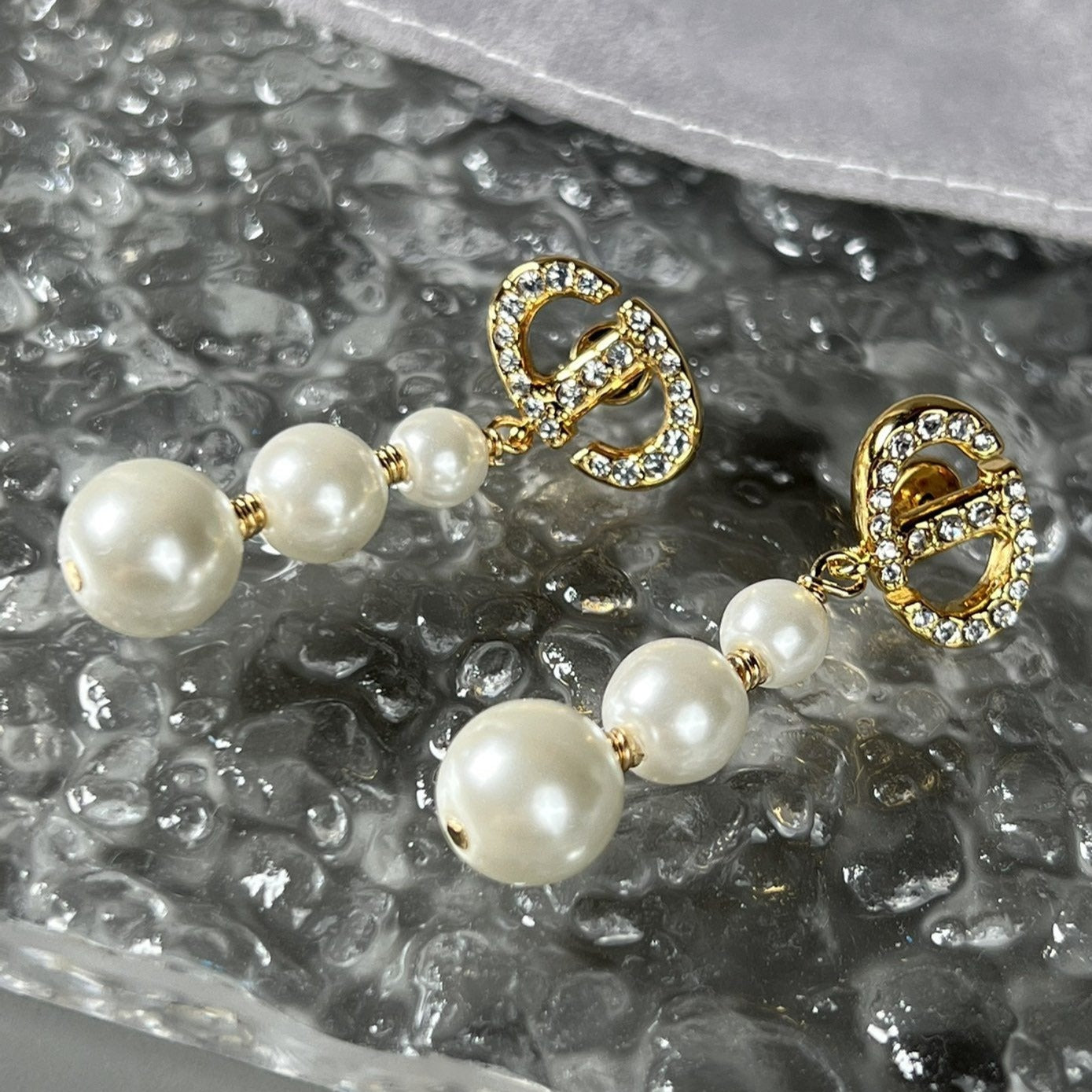 CD 3 PEARL GOLD DIAMOND EARRINGS