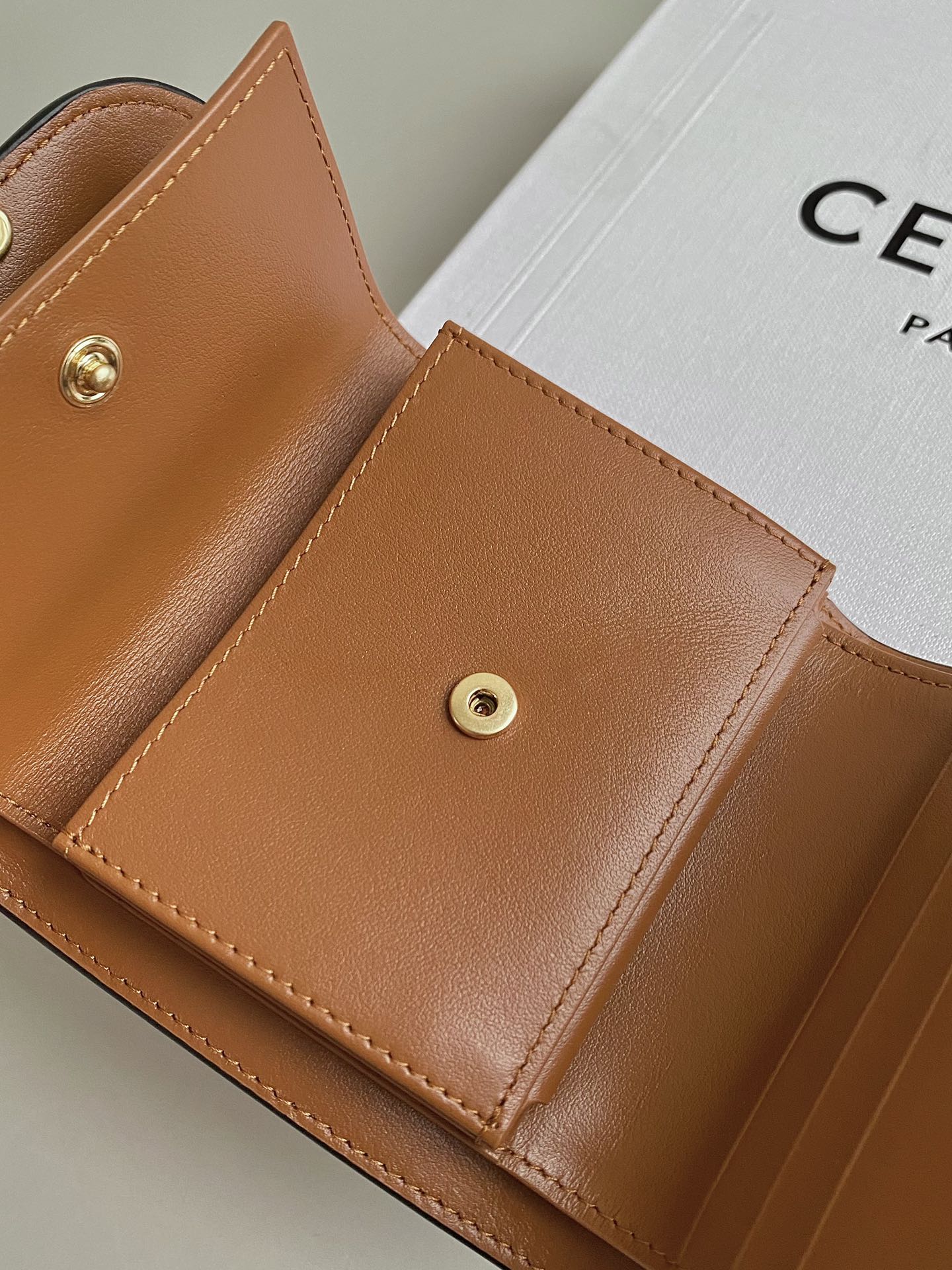 TRIPHOME 10 TRIFOLD WALLET CALFSKIN AND CANVAS WHITE BROWN