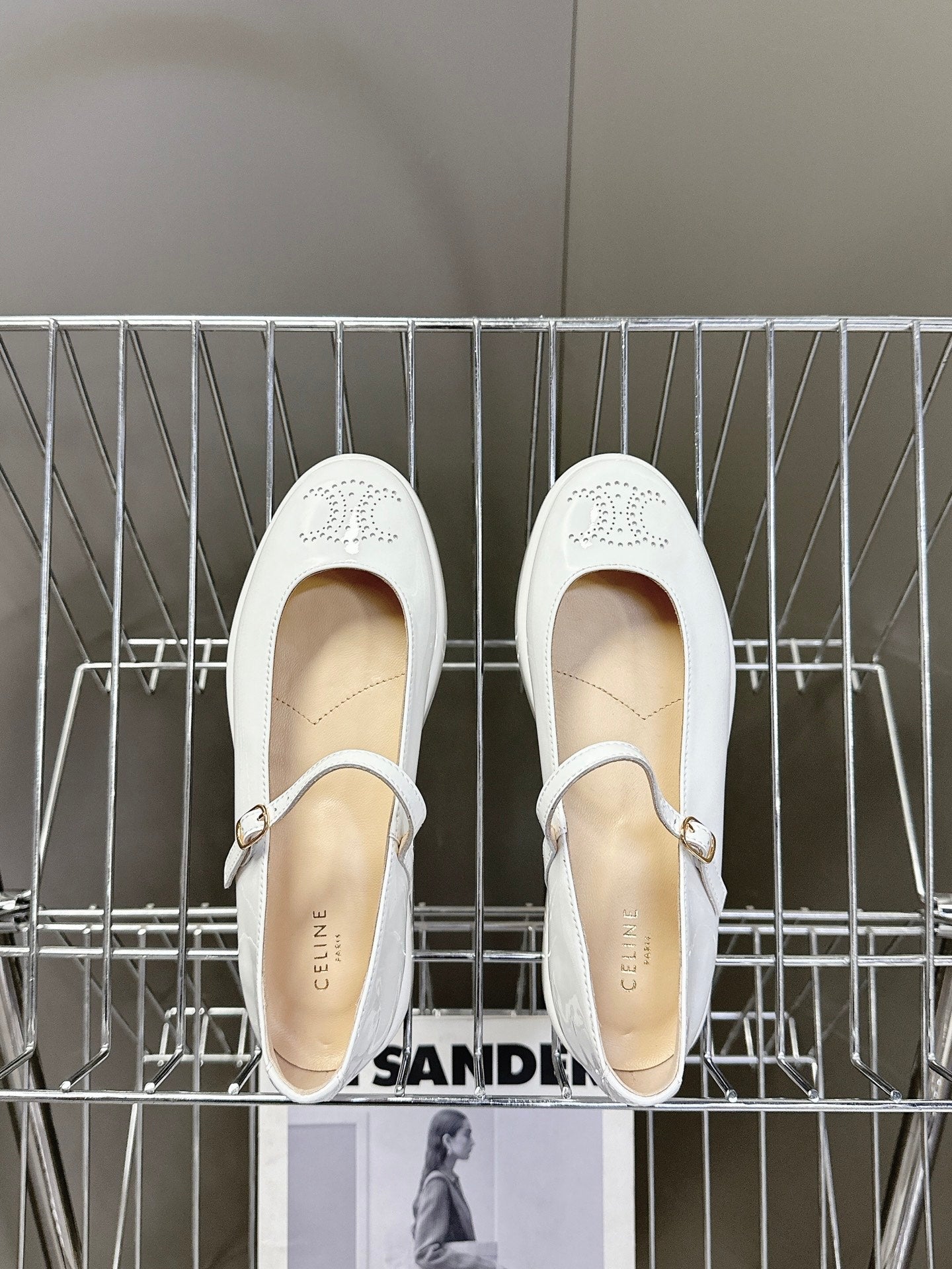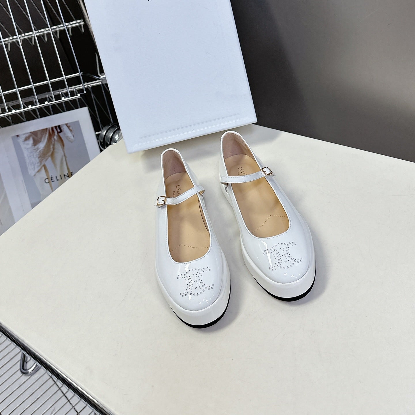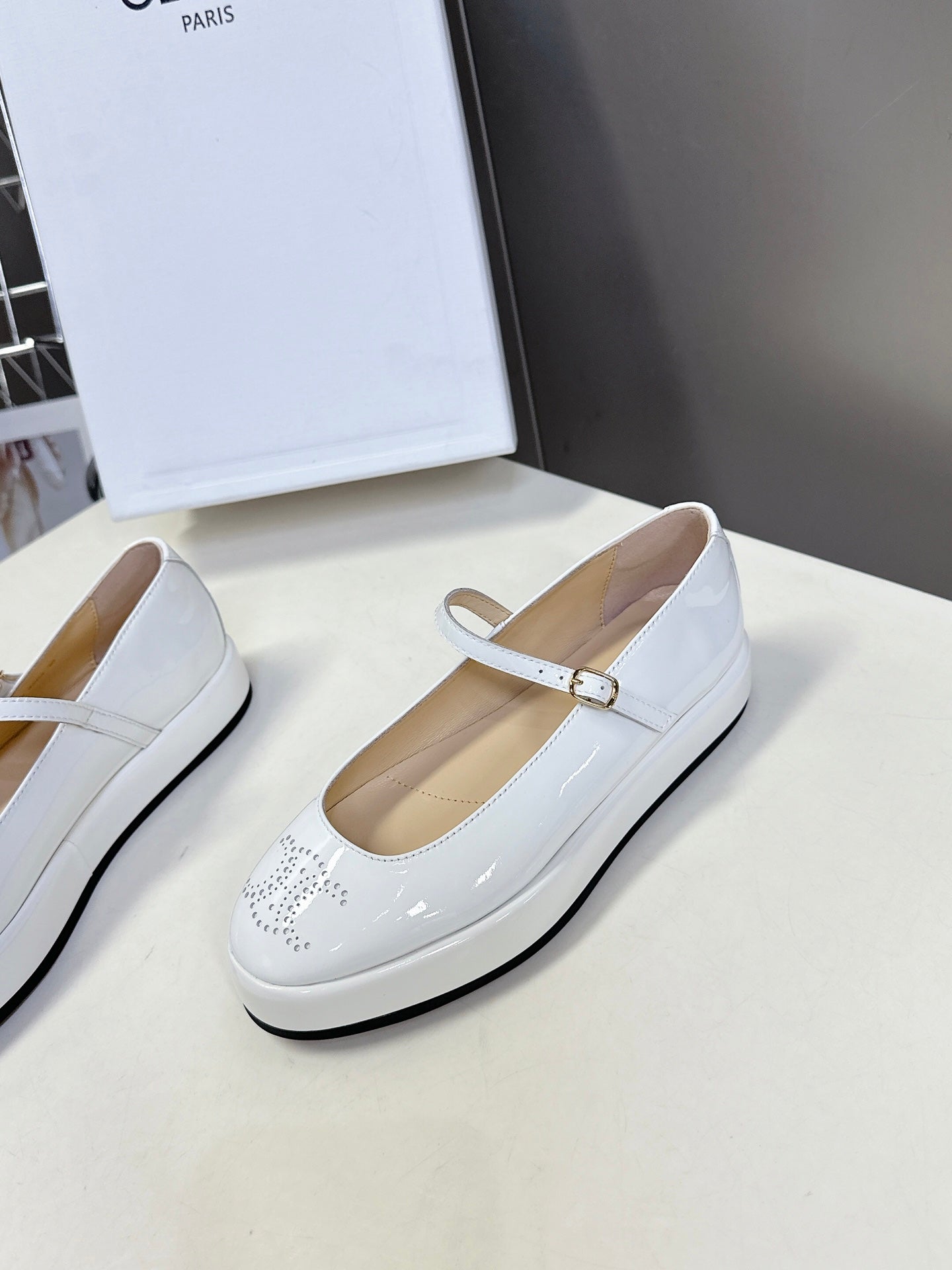 CELINE Ballet Flats White Patent Leather 285930