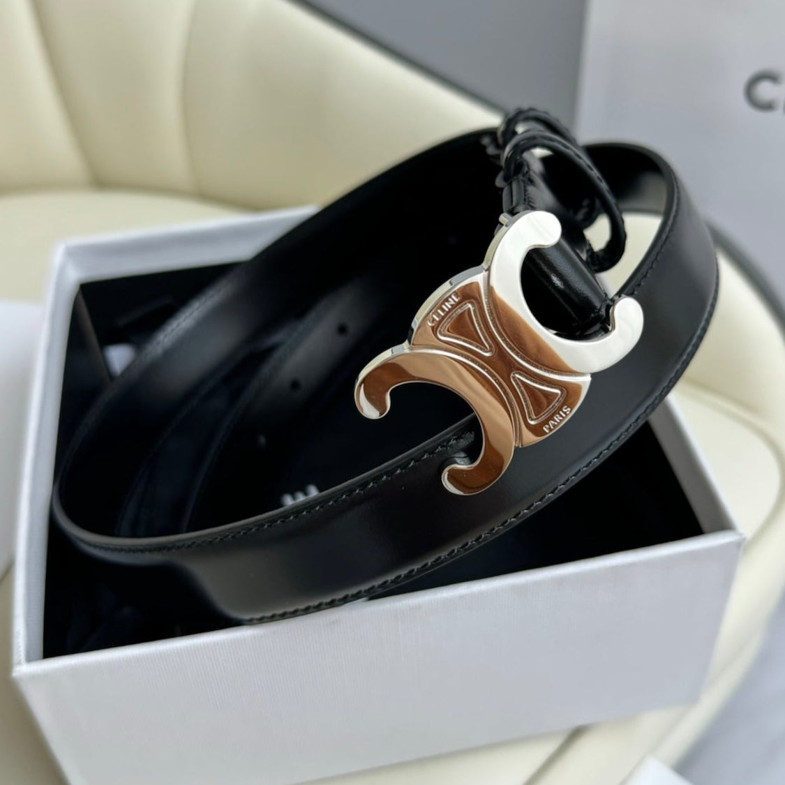 CEL Silver Buckle 18mm Belt Black Cowhide 179732