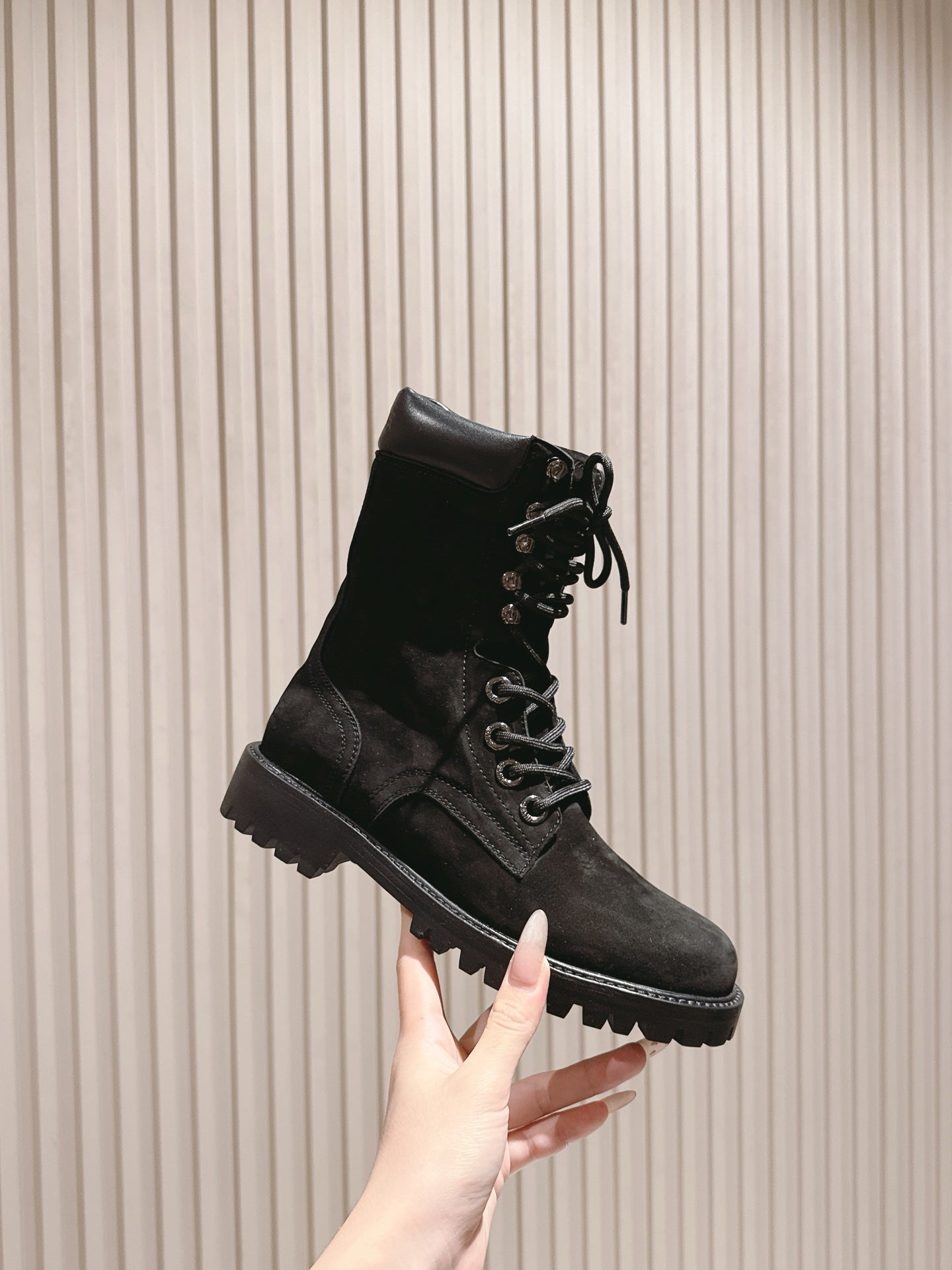 CELINE Kurt Lace-Up Mid Boot Black Nubuck Calfskin 452785