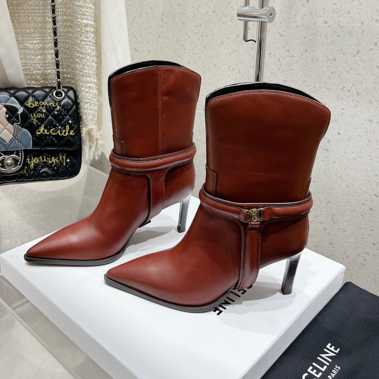 VERNEUIL ANKLE BOOT WITH TRIOMPHE IN RED BROWN CALFSKIN