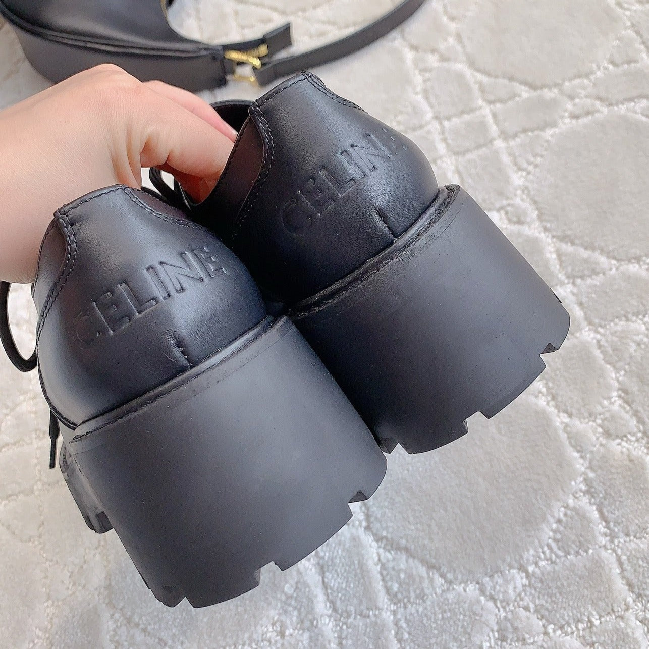 TRIOMPHE RANGERS DERBY WITH PERFORATED TRIOMPHE IN POLISHED BULL BLACK