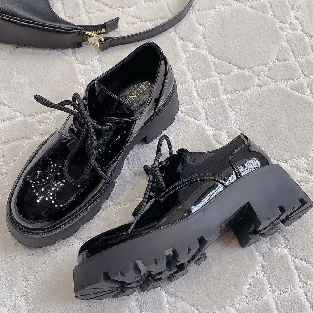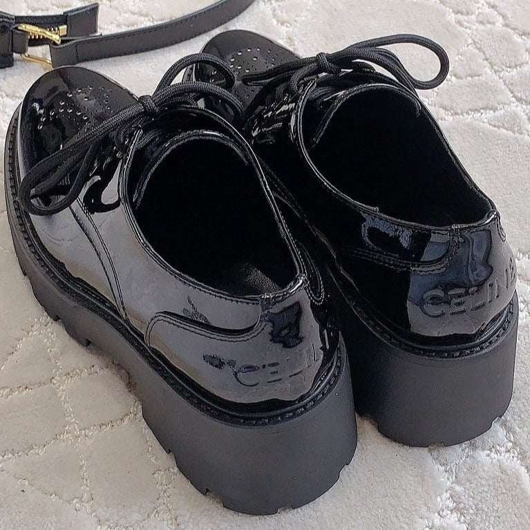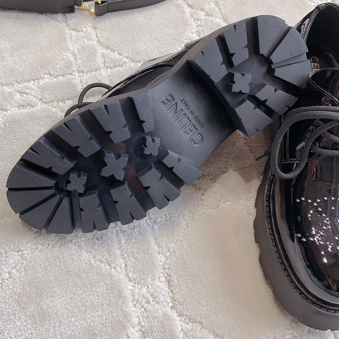 TRIOMPHE RANGERS DERBY WITH PERFORATED TRIOMPHE IN POLISHED BULL GLOSSY BLACK