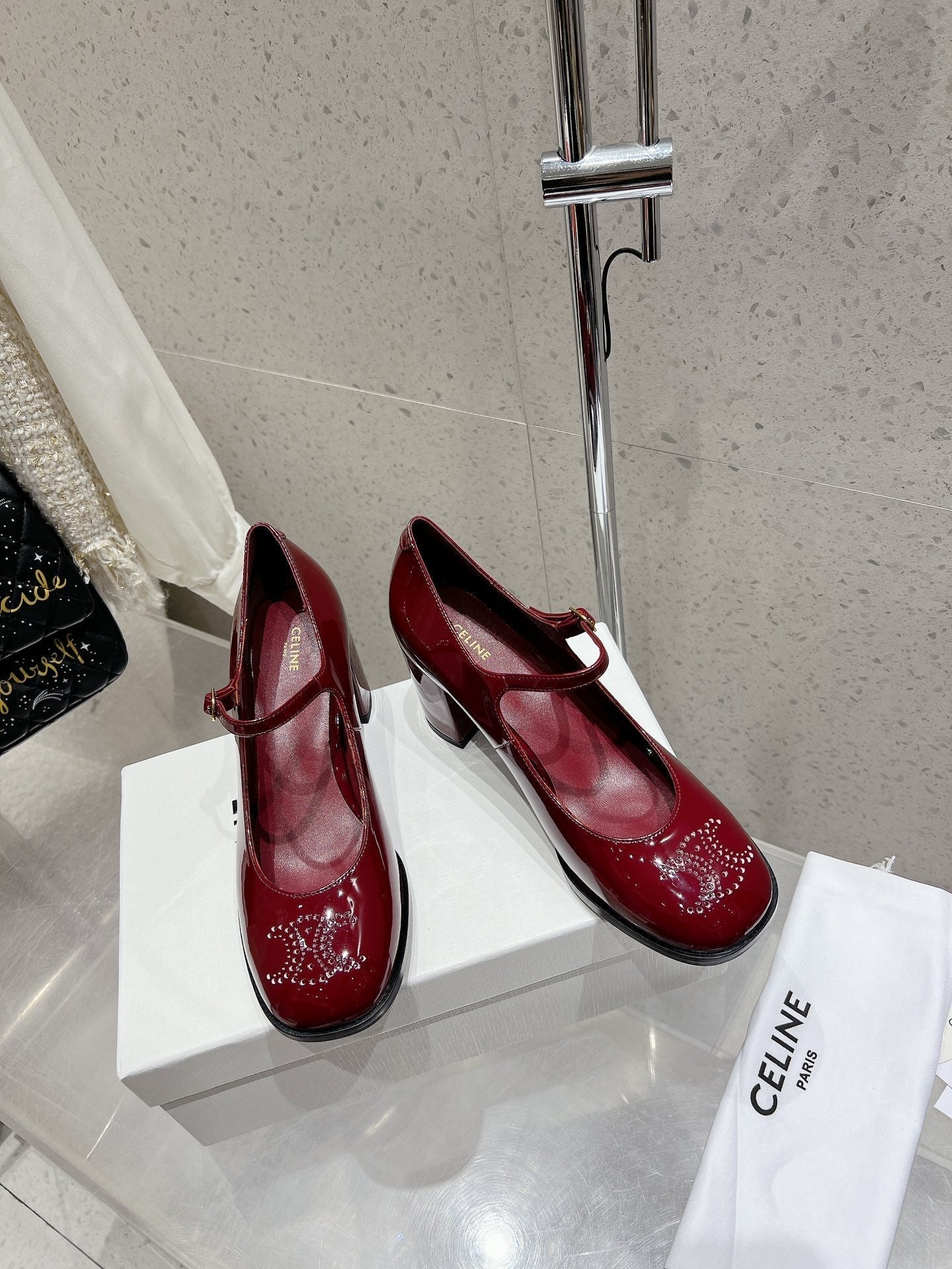 HIGH MARY JANE SHOES IN GARNET RED PATENT CALFSKIN