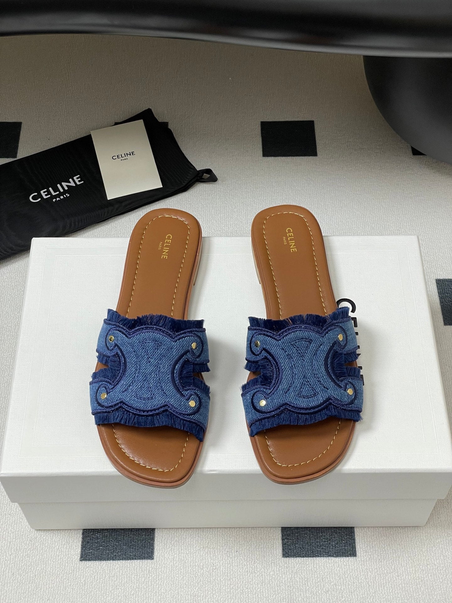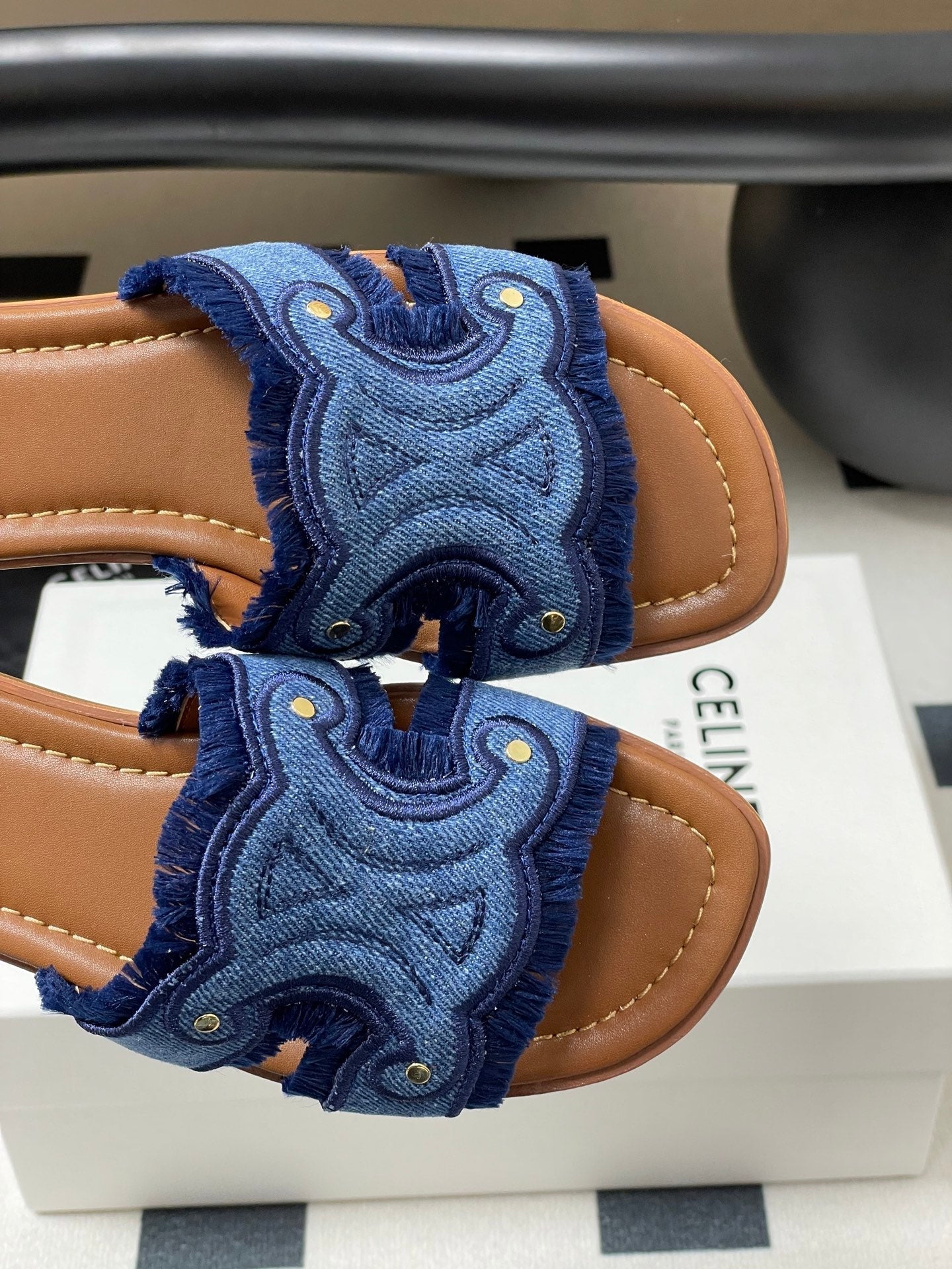 CL Marina Fringed Flat Mule In Blue Denim 319736