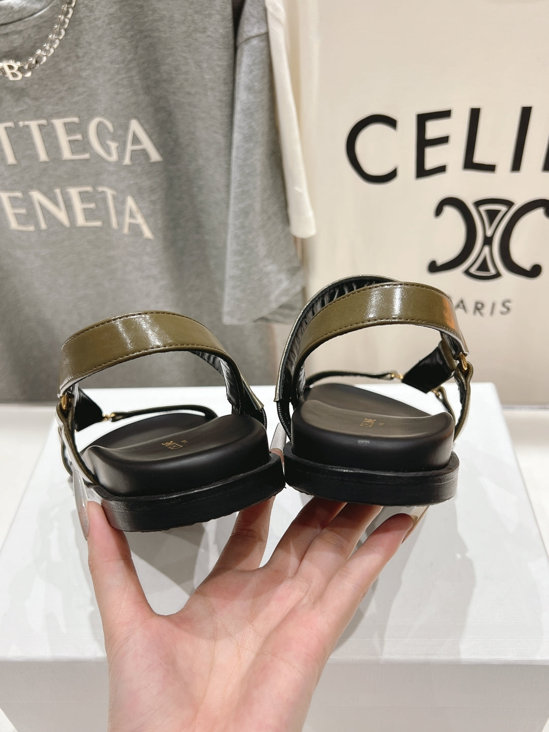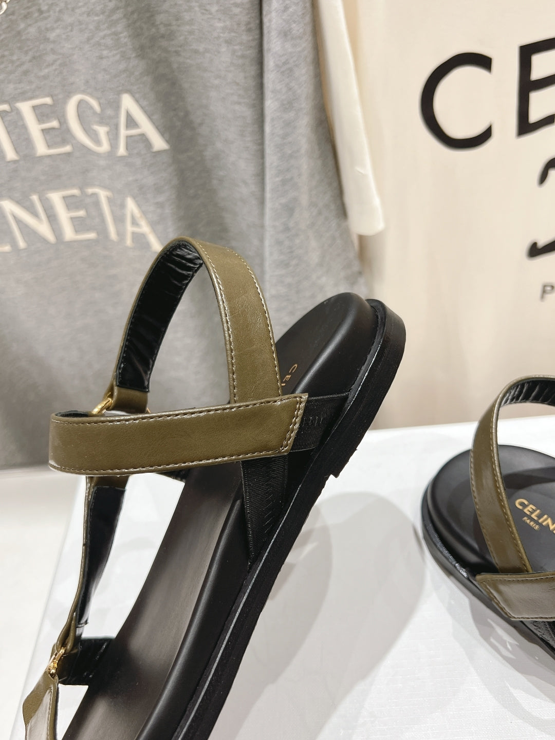 CELINE MAUD SANDAL WITH TRIOMPHE ARMY GREEN COWHIDE 236757