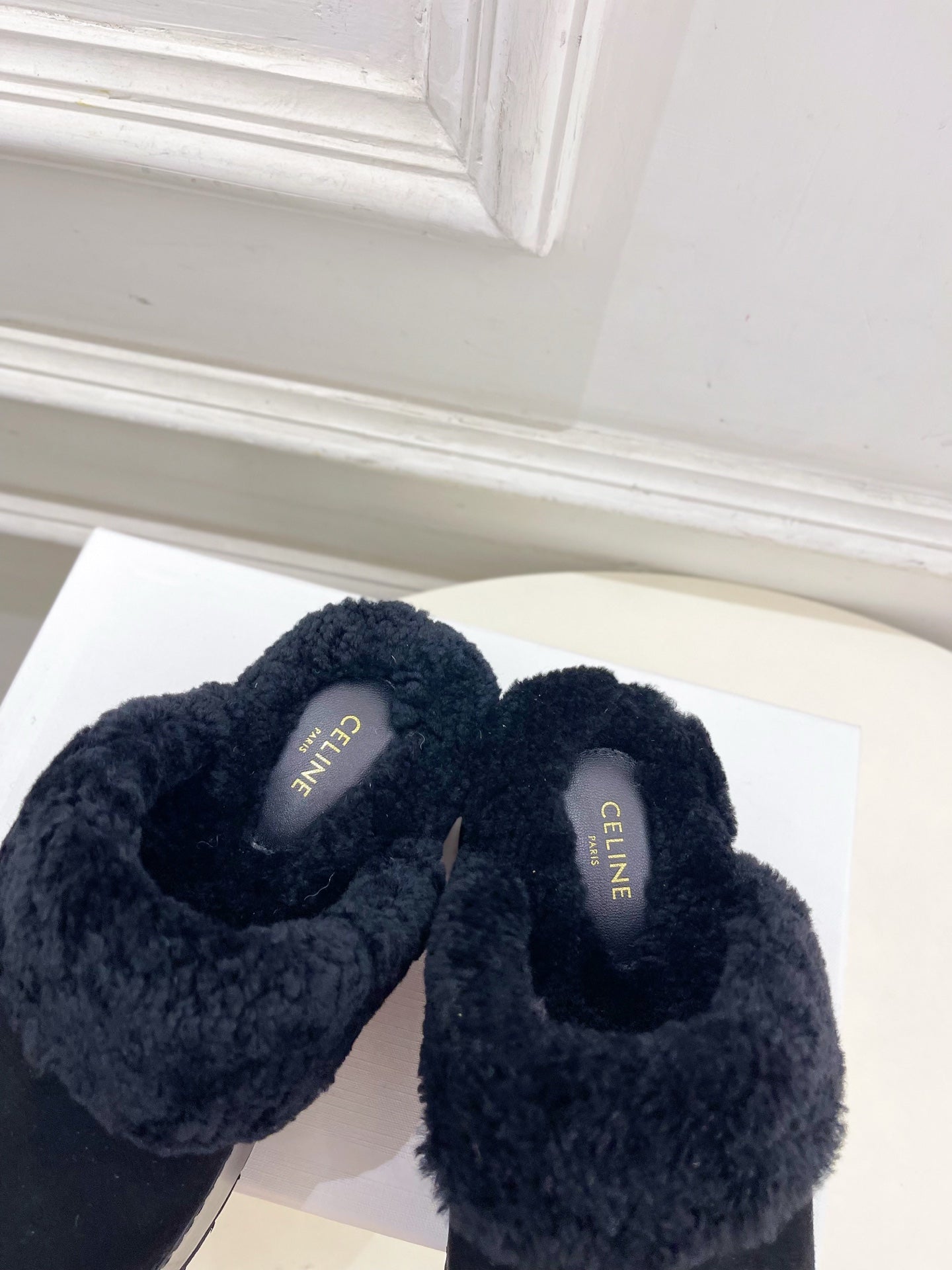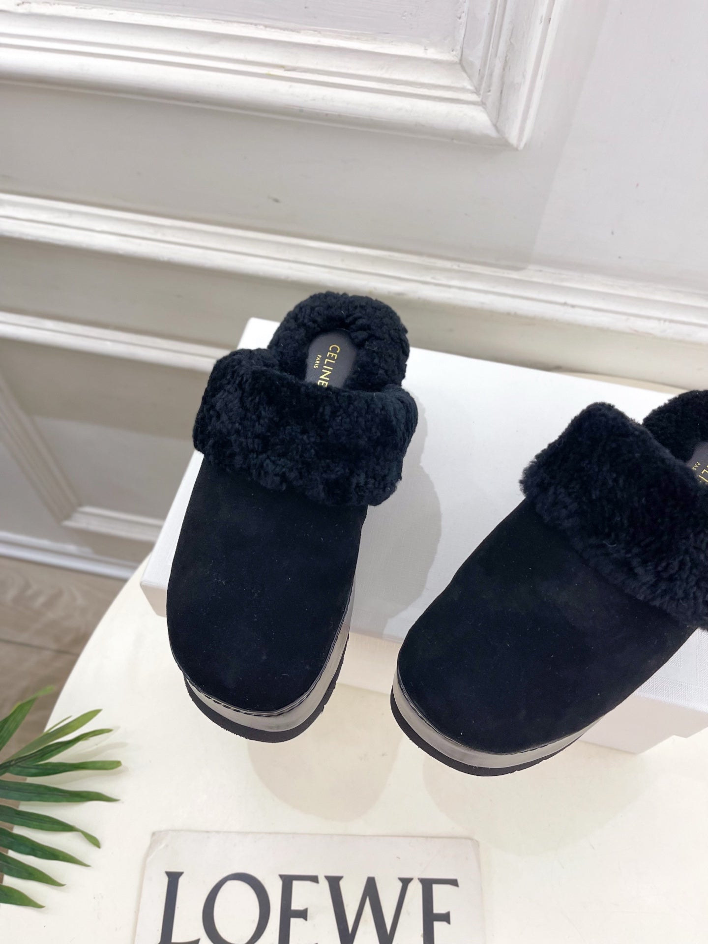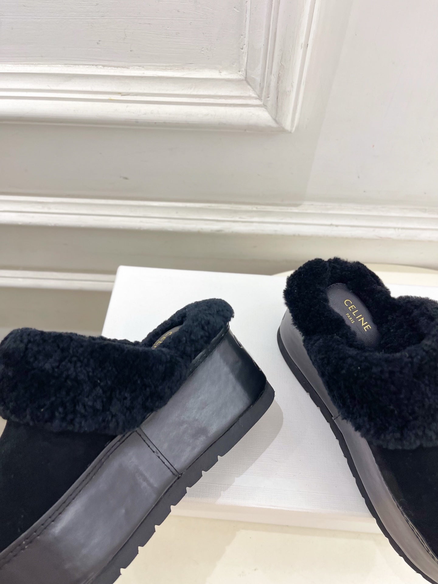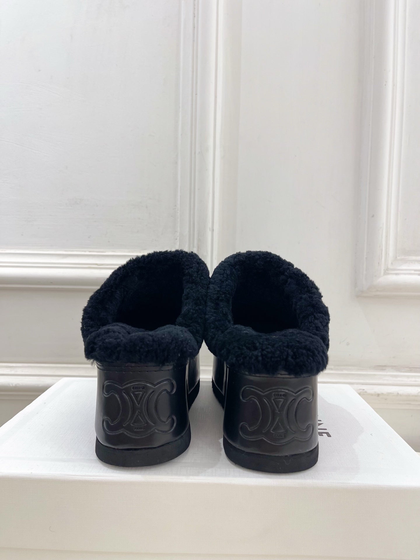 CL 25s Dana Wedge Mule 80mm Black Suede Calfskin & Shearling