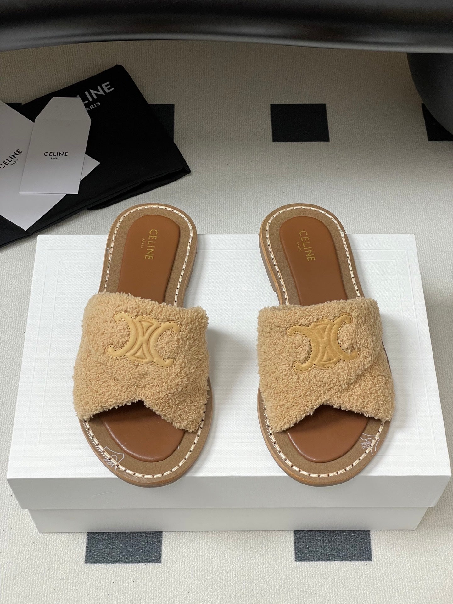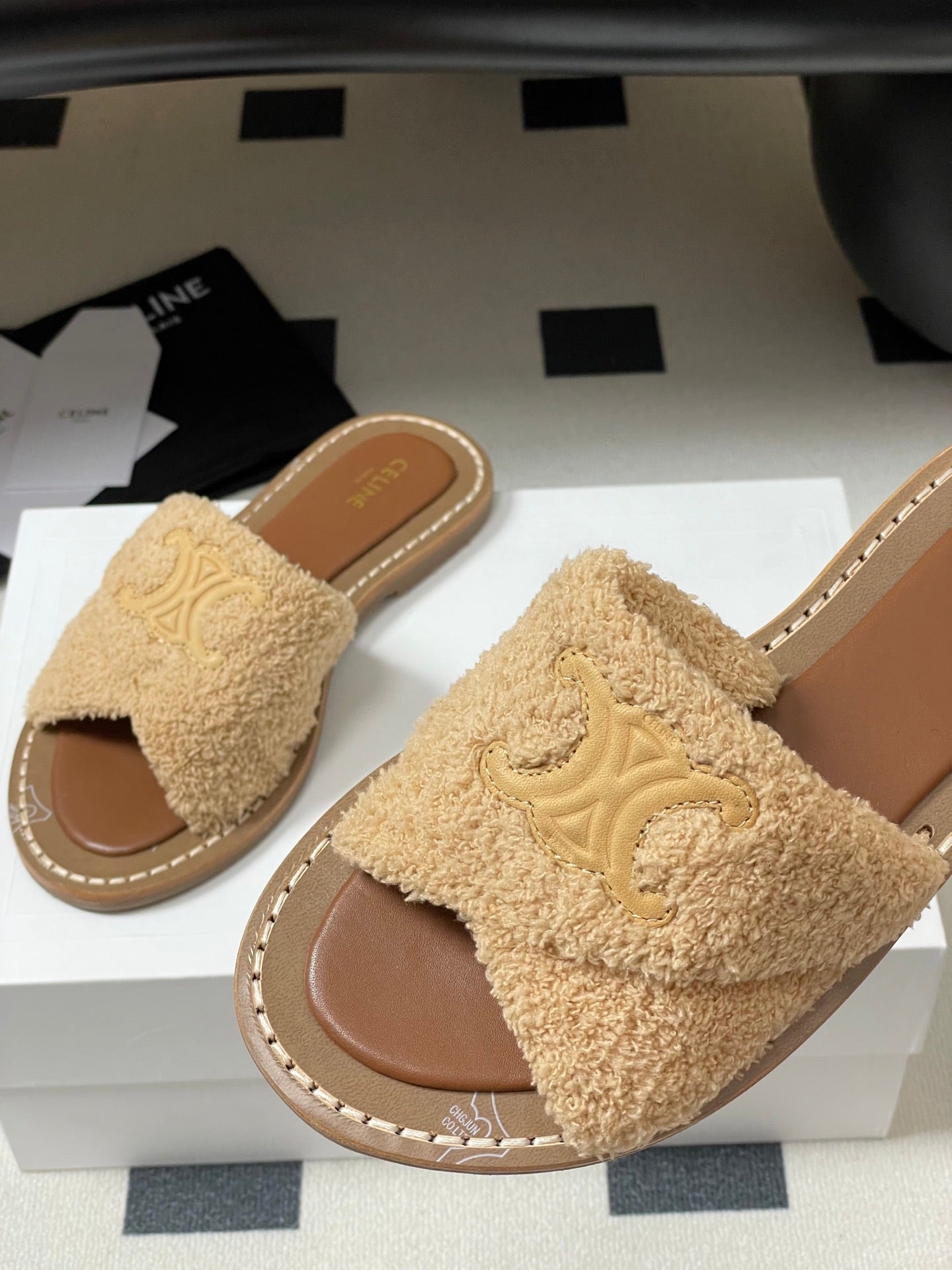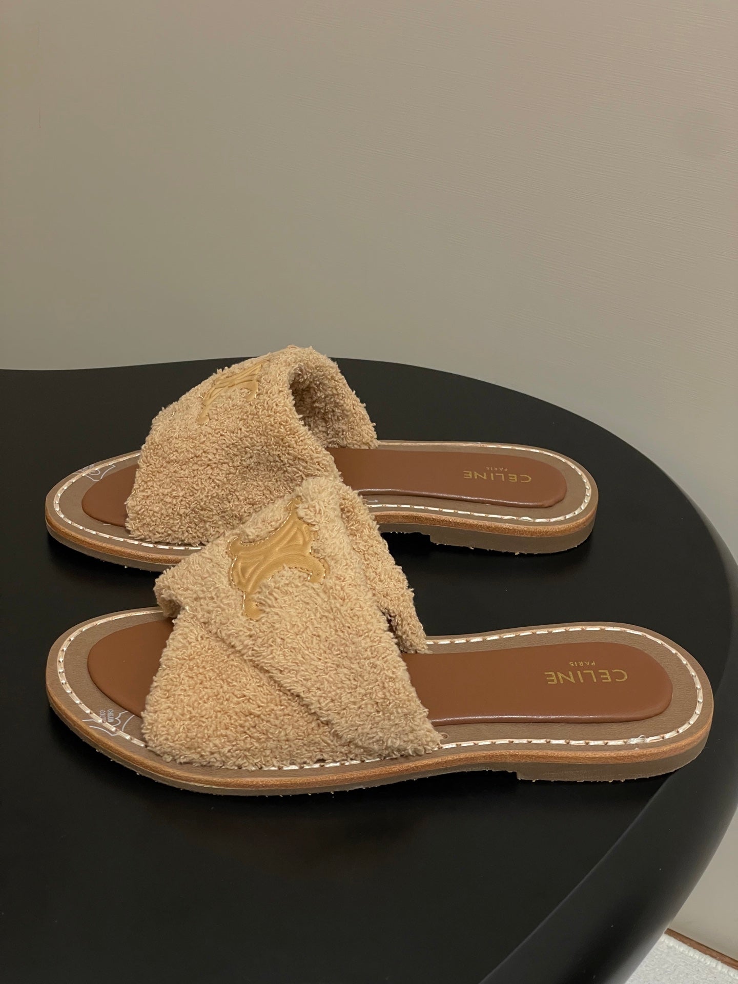 CL 25s Lympia Twisted Sandal Beige Brown Sheepskin Plush Cloth 416656