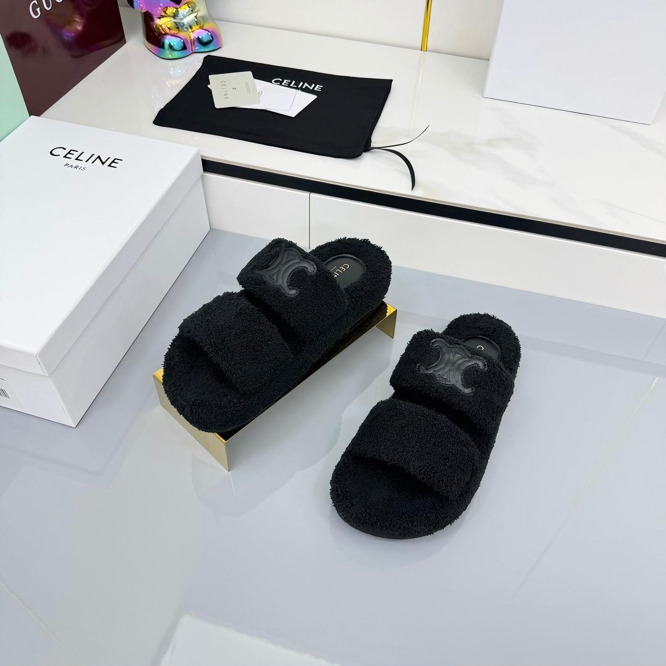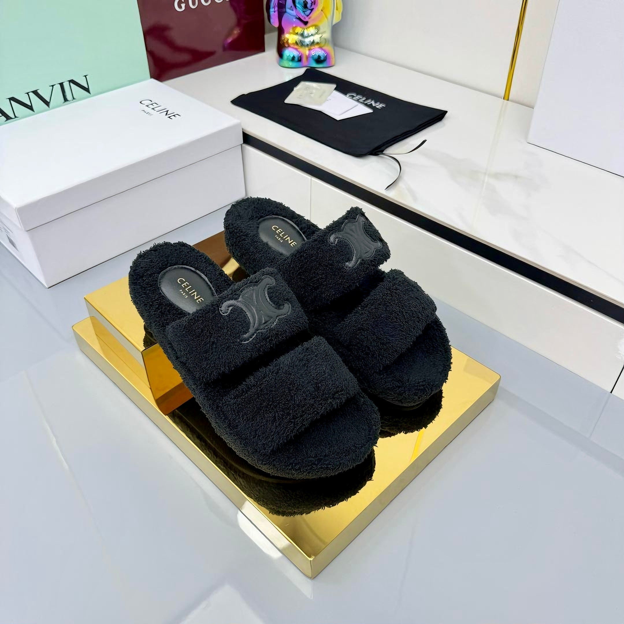 CL 25s Triomphe Slides 50mm Black Wool & Rubber 434462