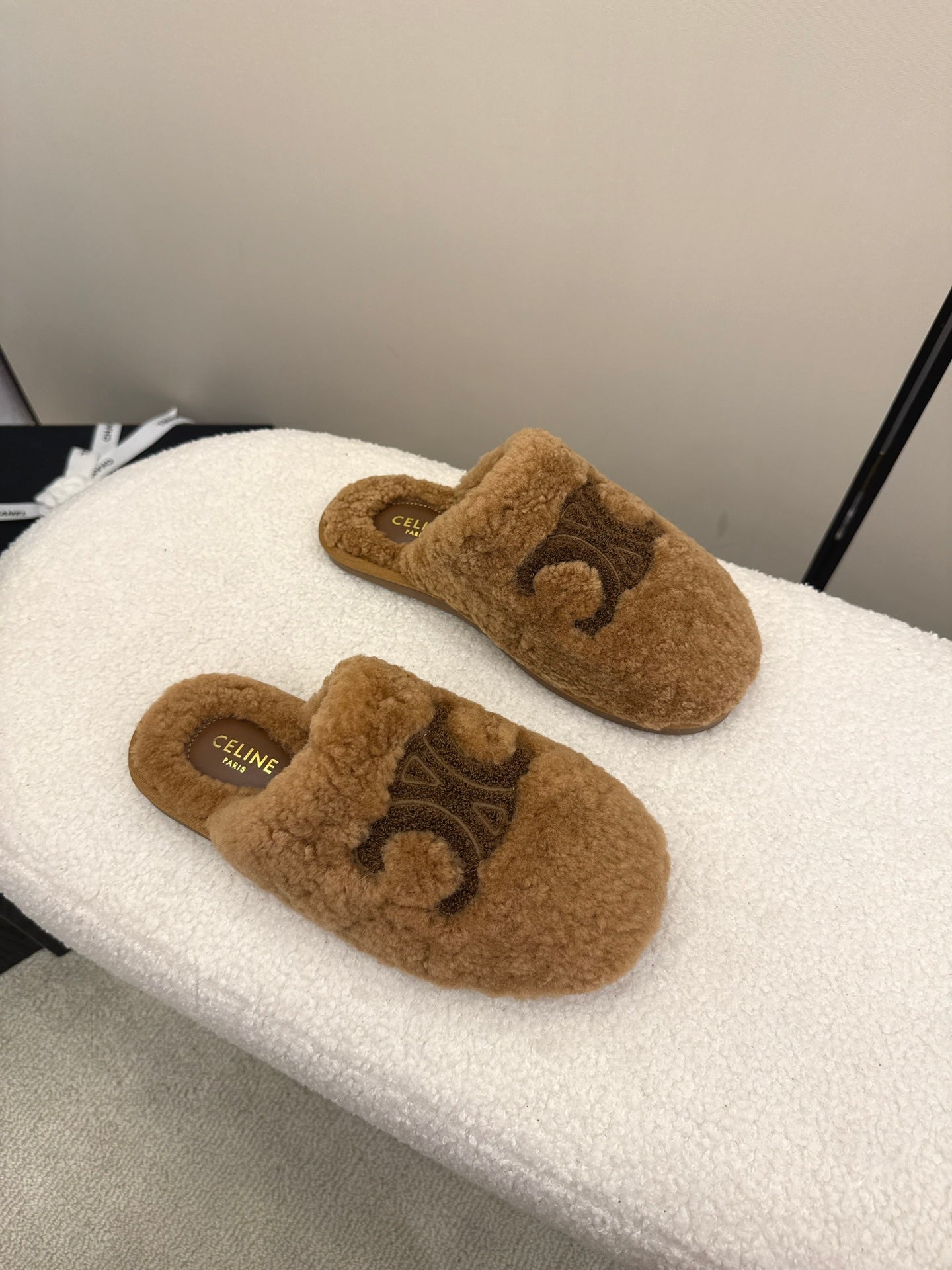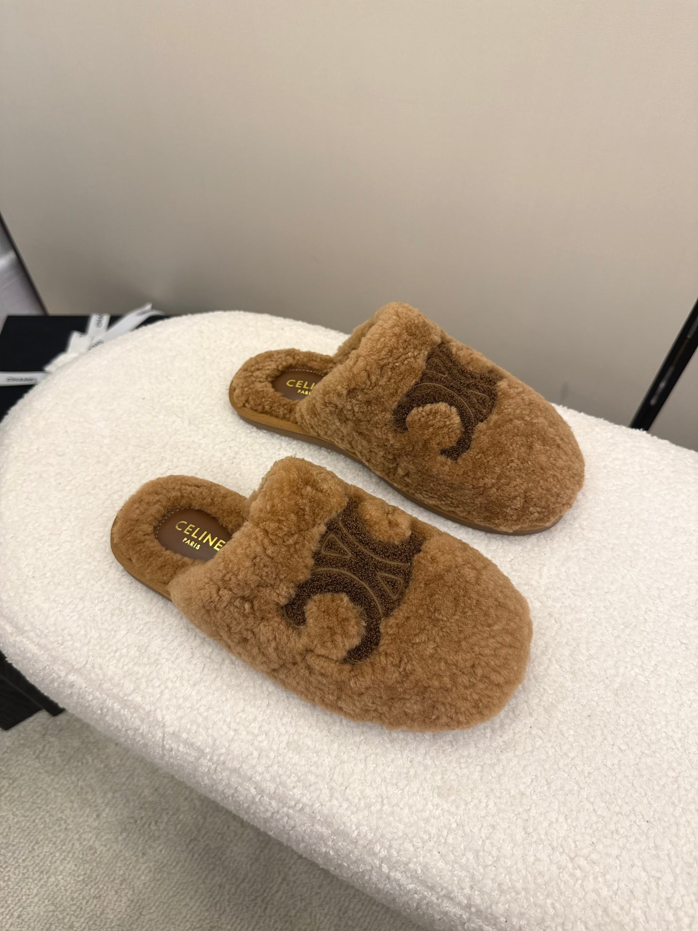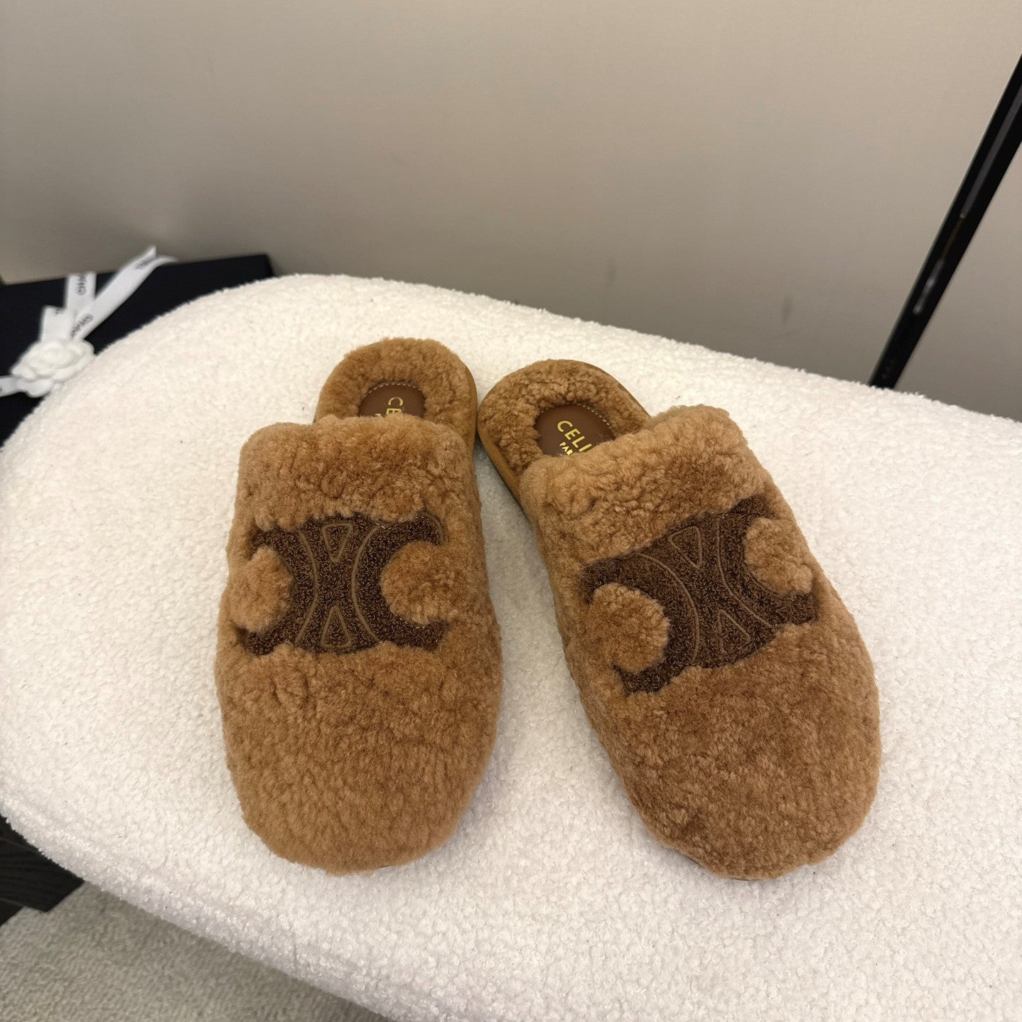 CL Elena Mule in Shearling 10mm Brown Wool 435861
