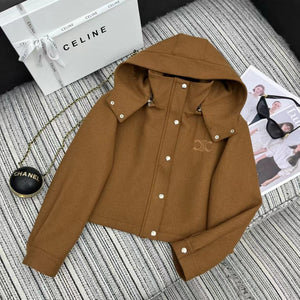 Triomphe Embroidered Hooded Jacket In Tan Cotton