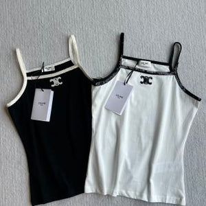 Celine 25 Beaded Camisole White and Black Cotton