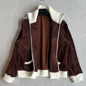Celine 25 Zipper Jacket Brown White Cotton Polyester