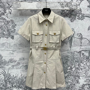 Celine 25 Short-sleeved Shirt Dress Beige Cotton