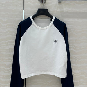 Celine Arc de Triomphe long-sleeved T-shirt Navy Blue mix White Cotton