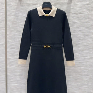 Celine 2025 A-line Dress Black mix White Tencel cotton