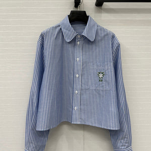 Celine 25 Embroidered Logo Striped Small Vest Navy Blue mix White Cotton