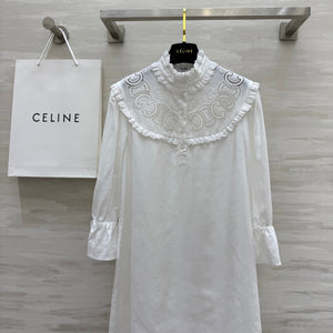 Celine 25 Embroidery Lace Shirt White mix Black Cotton